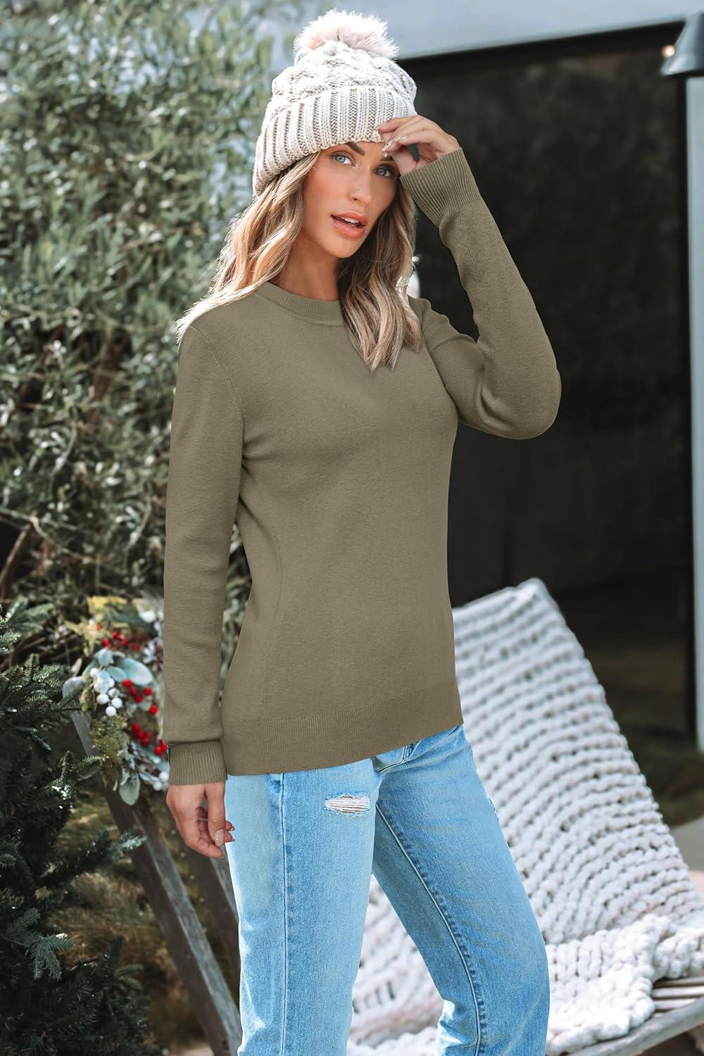 Arach&Cloz Women’s Wool Blend Classic Crew Neck Casual Fall Sweaters(A-green Tea)