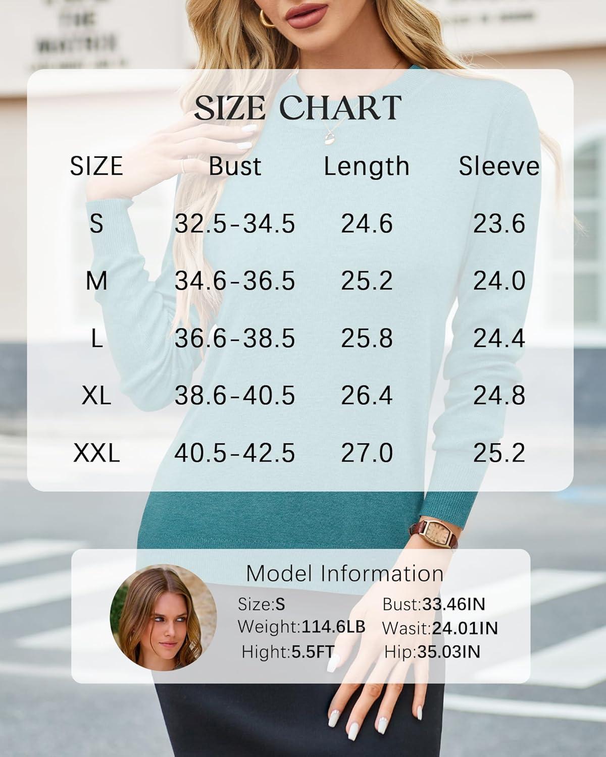Arach&Cloz Women’s Wool Blend Classic Crew Neck Casual Fall Sweaters(A-lake Blue)