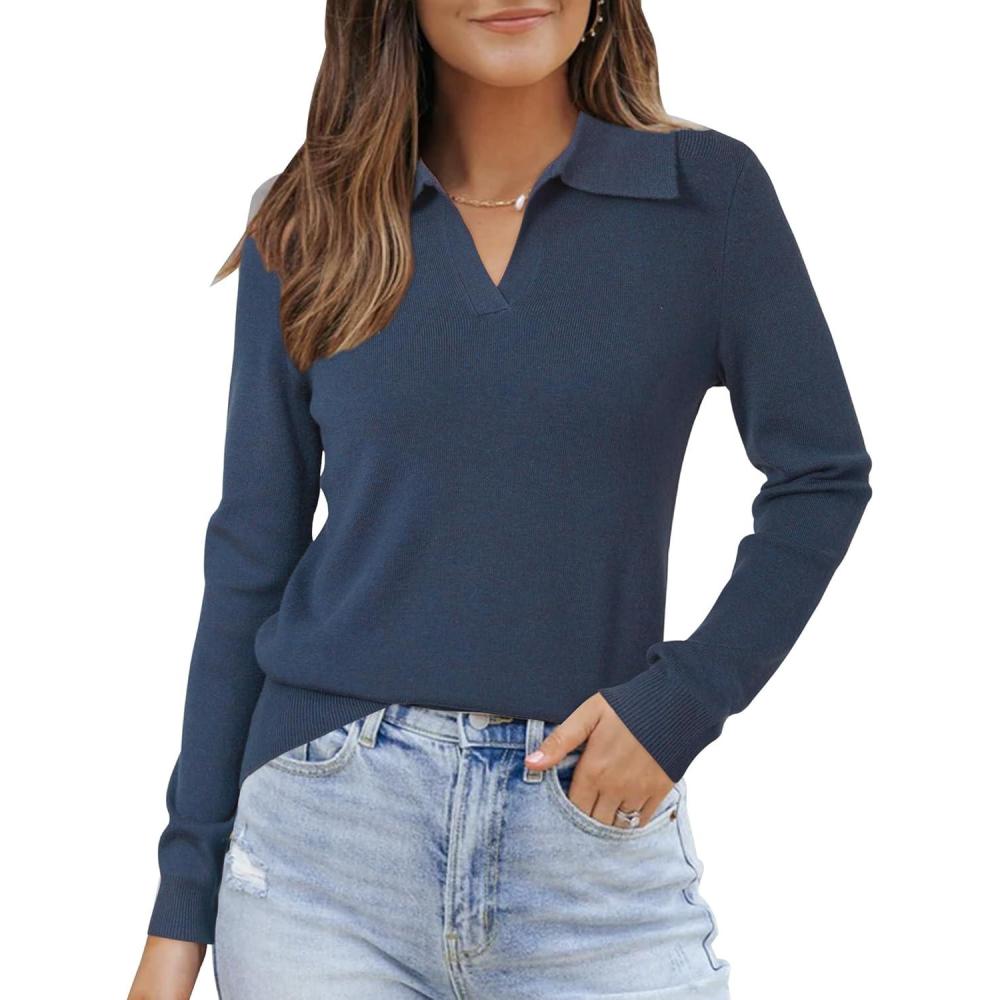 Arach&Cloz Women’s Wool Blend Collared Fall Pullover Sweaters Business Casual Outfits 2025(Dark Blue)
