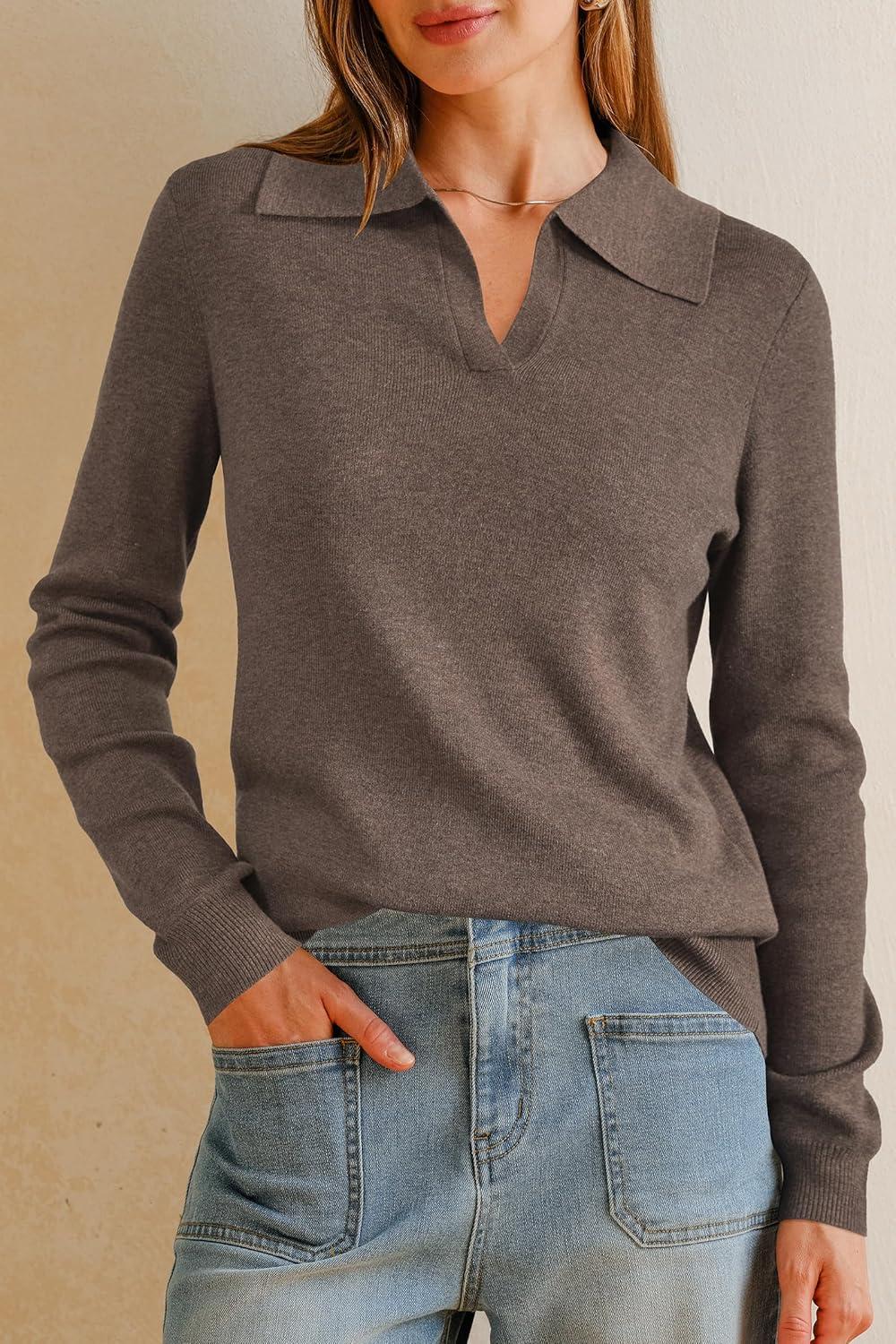 Arach&Cloz Women’s Wool Blend Collared Polo Pullover Spring Sweaters Business Casual Outfits 2026(Coffee)