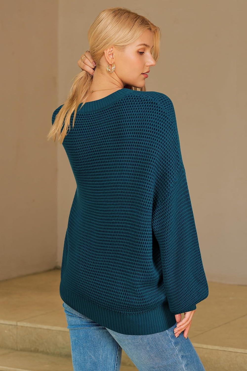 Arach&Cloz Women’s Wool Blend Crewneck Fall Trendy Oversized Waffle Sweaters 2025(Dark Blue)