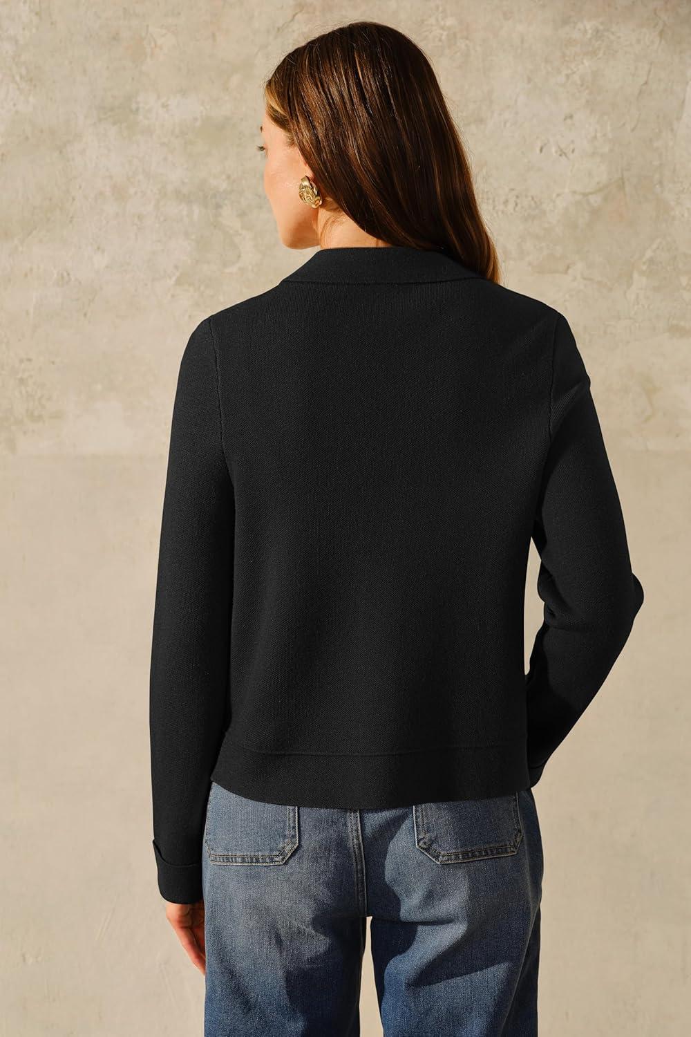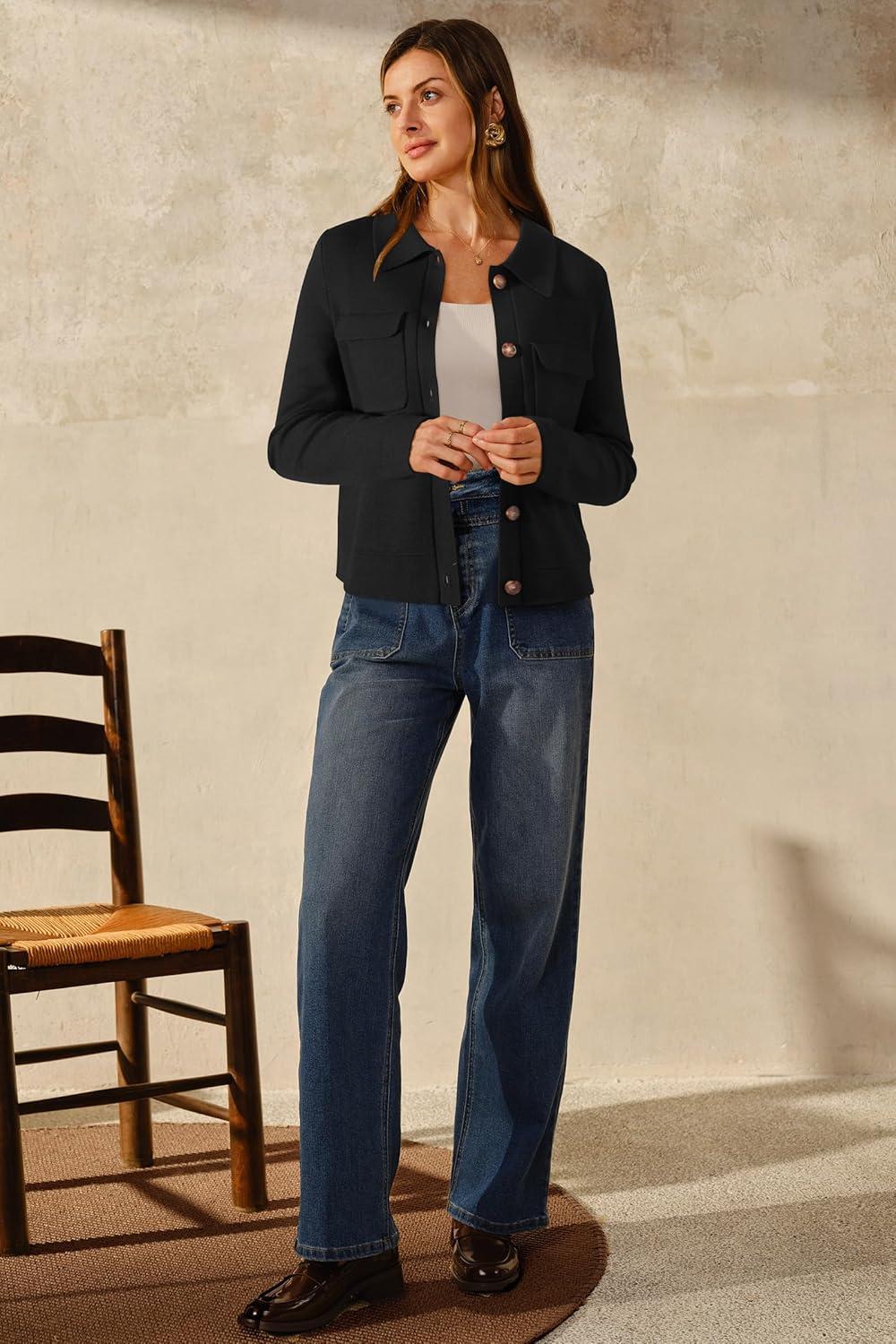 Arach&Cloz Women's Wool Blend Fall Fashion Button Down Cropped Jacket Shackets 2025(Black)