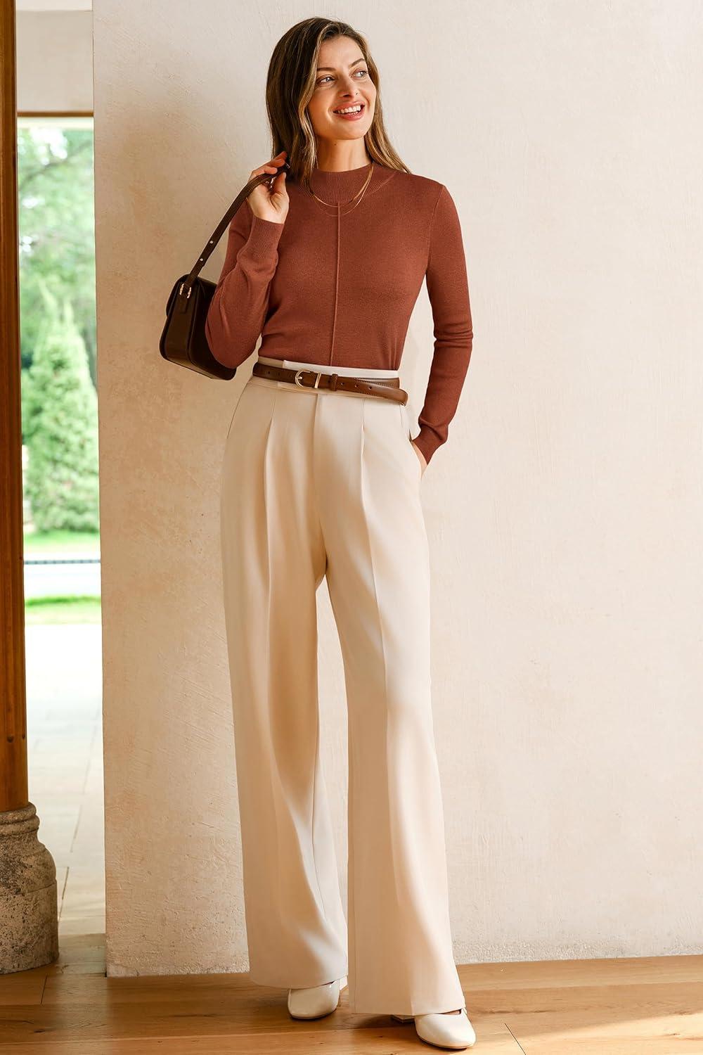 Arach&Cloz Women’s Wool Blend Fall Sweaters Mock Neck Business Casual Outfits(Caramel)