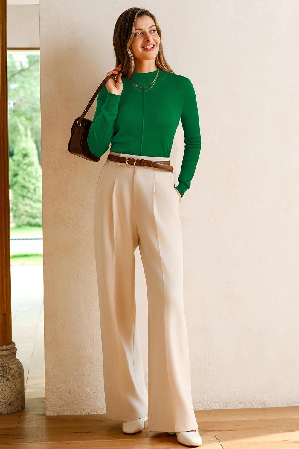 Arach&Cloz Women's Wool Blend Fall Sweaters Mock Neck Business Casual Outfits(Green)
