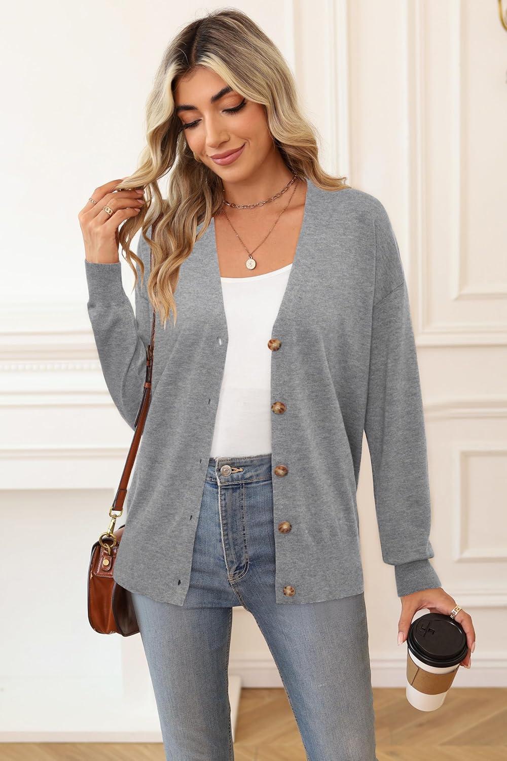 Arach&Cloz Women’s Wool Blend Lightweight Fall Business Casual Cardigan Sweaters(Gray)