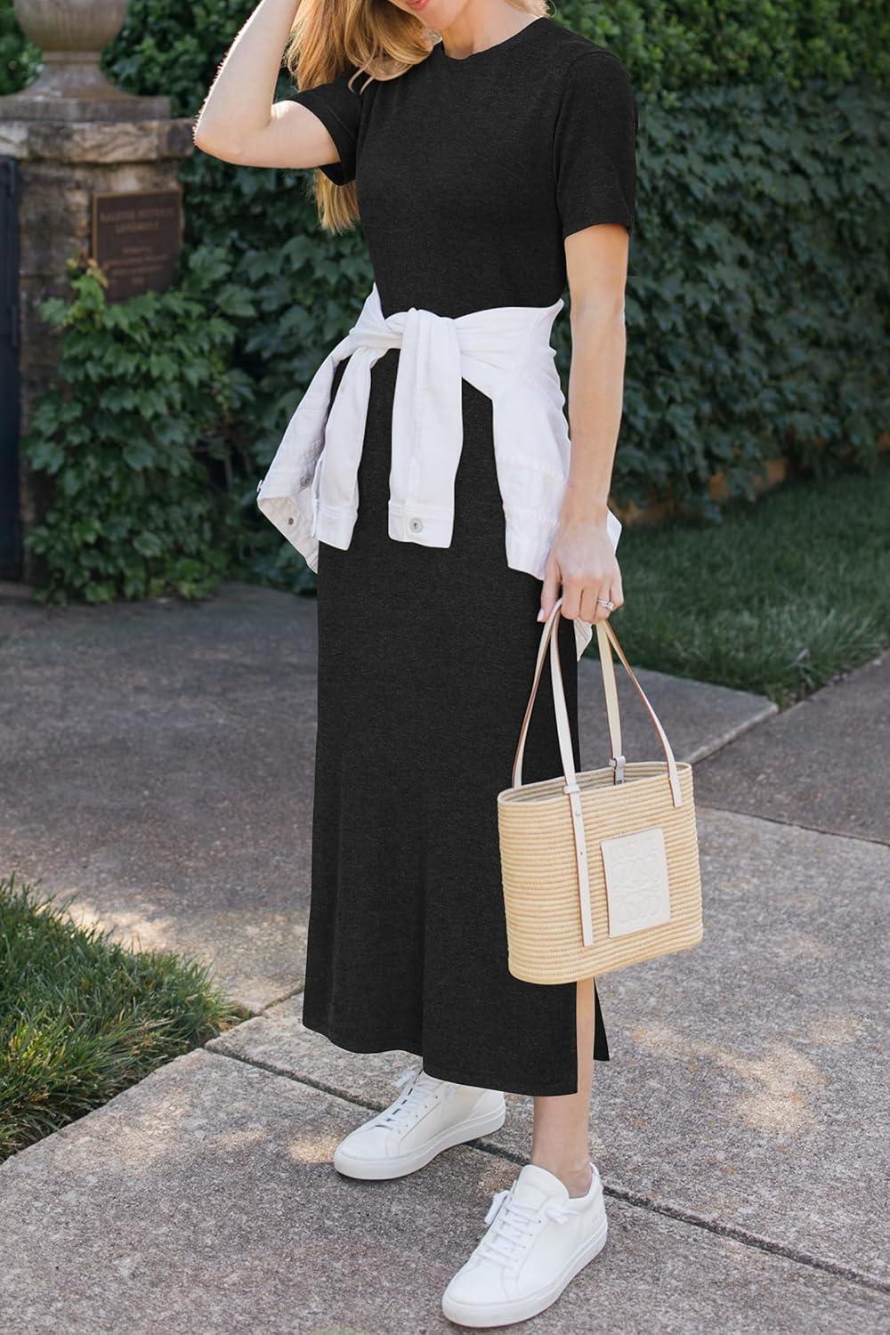 Arach&Cloz Women’s Wool Blend Lightweight Fall Casual T Shirts Maxi Dress 2025(Black)
