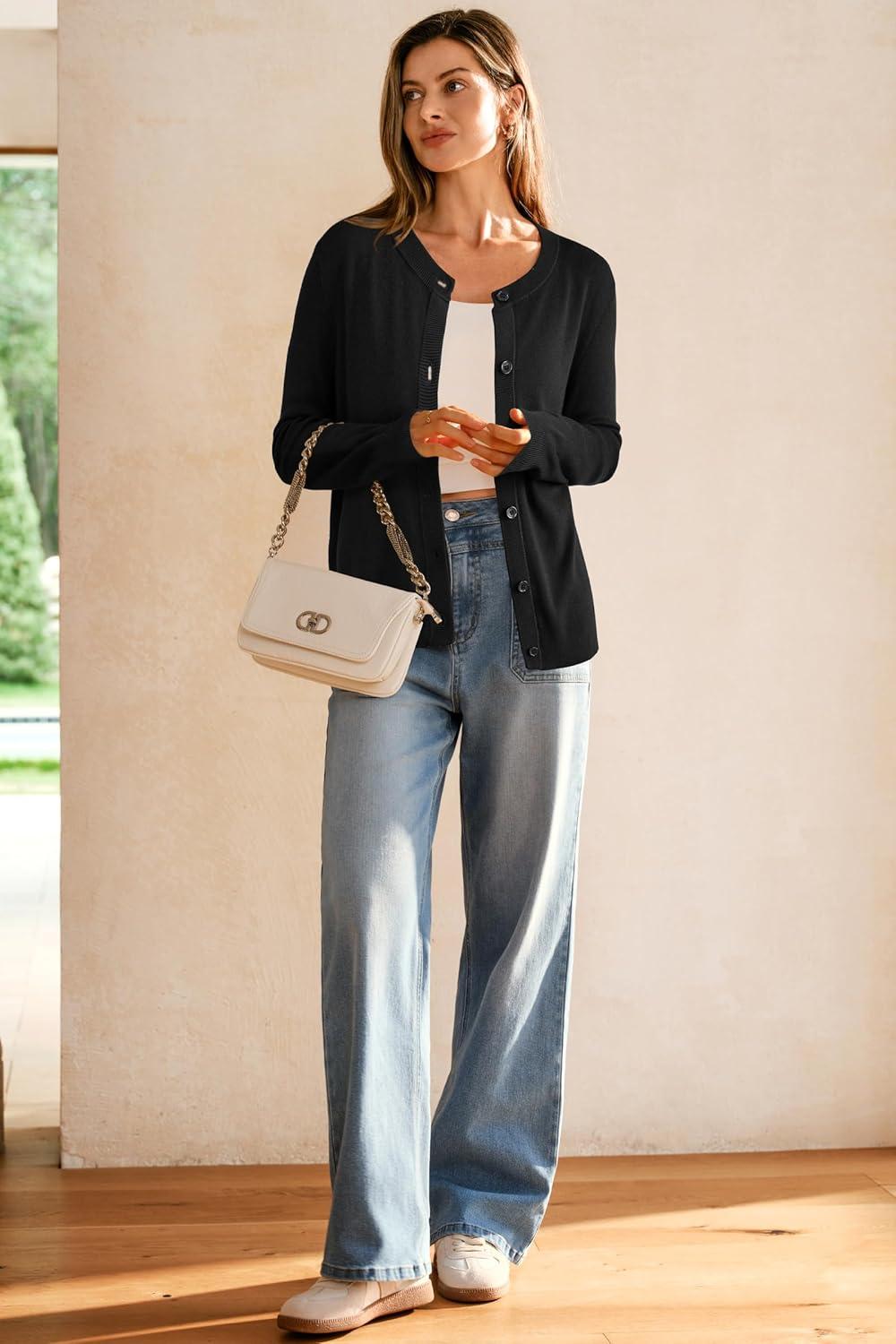 Arach&Cloz Women's Wool Blend Lightweight Spring Business Casual Cardigan Sweaters Tops(Black)