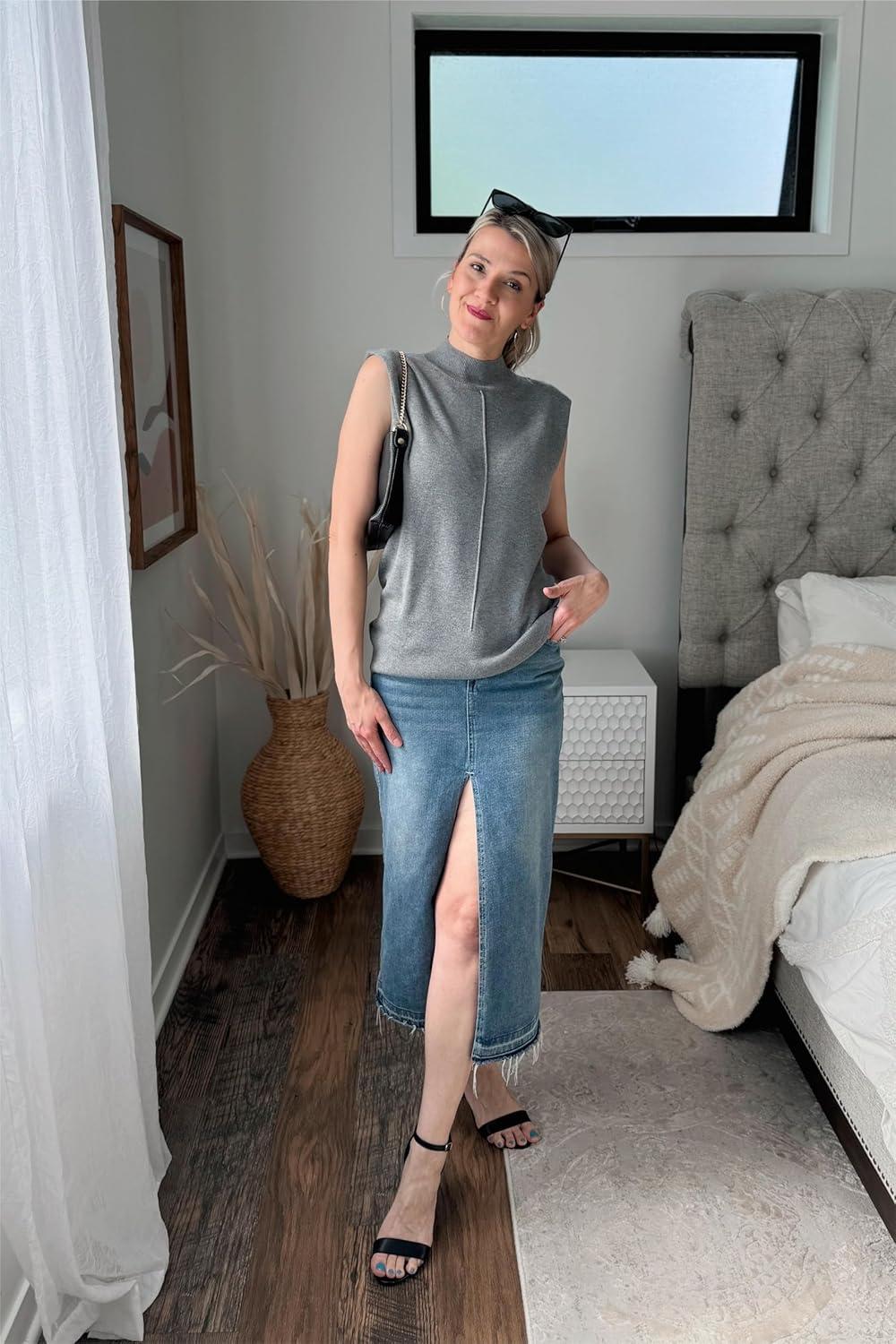 Arach&Cloz Women's Wool Blend Mock Neck Sweaters Vest Business Casual Lightweight Trendy Tops Summer Outfits 2026(Gray)