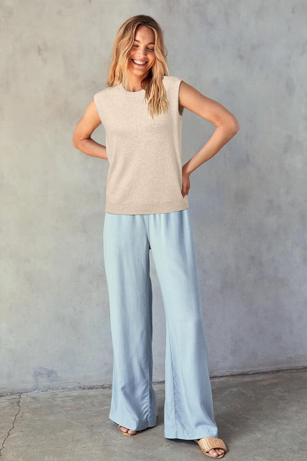 Arach&Cloz Women’s Wool Blend Mock Neck Sweaters Vest Business Casual Trendy Tops Fall Outfits 2025(Blue)