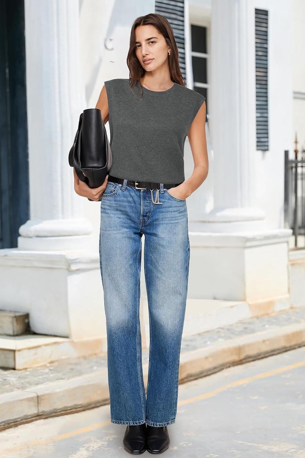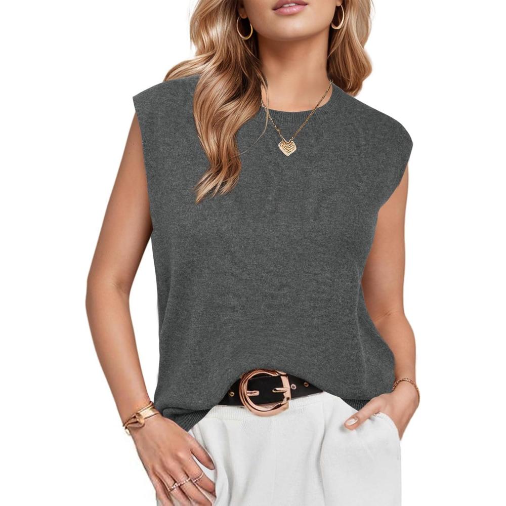 Arach&Cloz Women’s Wool Blend Mock Neck Sweaters Vest Business Casual Trendy Tops Fall Outfits 2025(Dark Grey-5046)