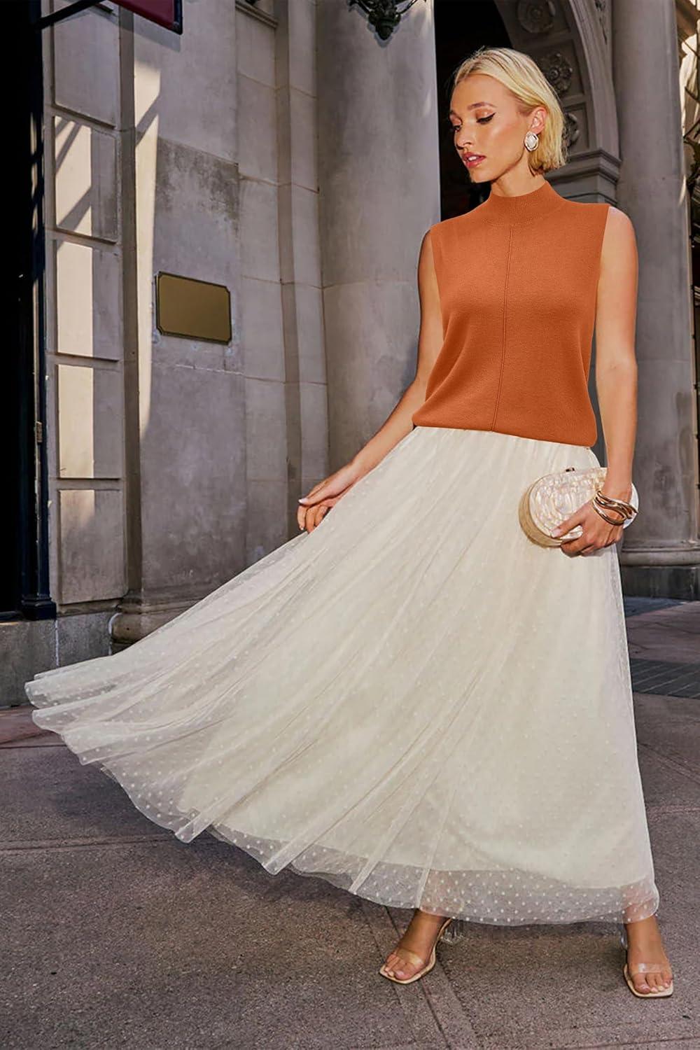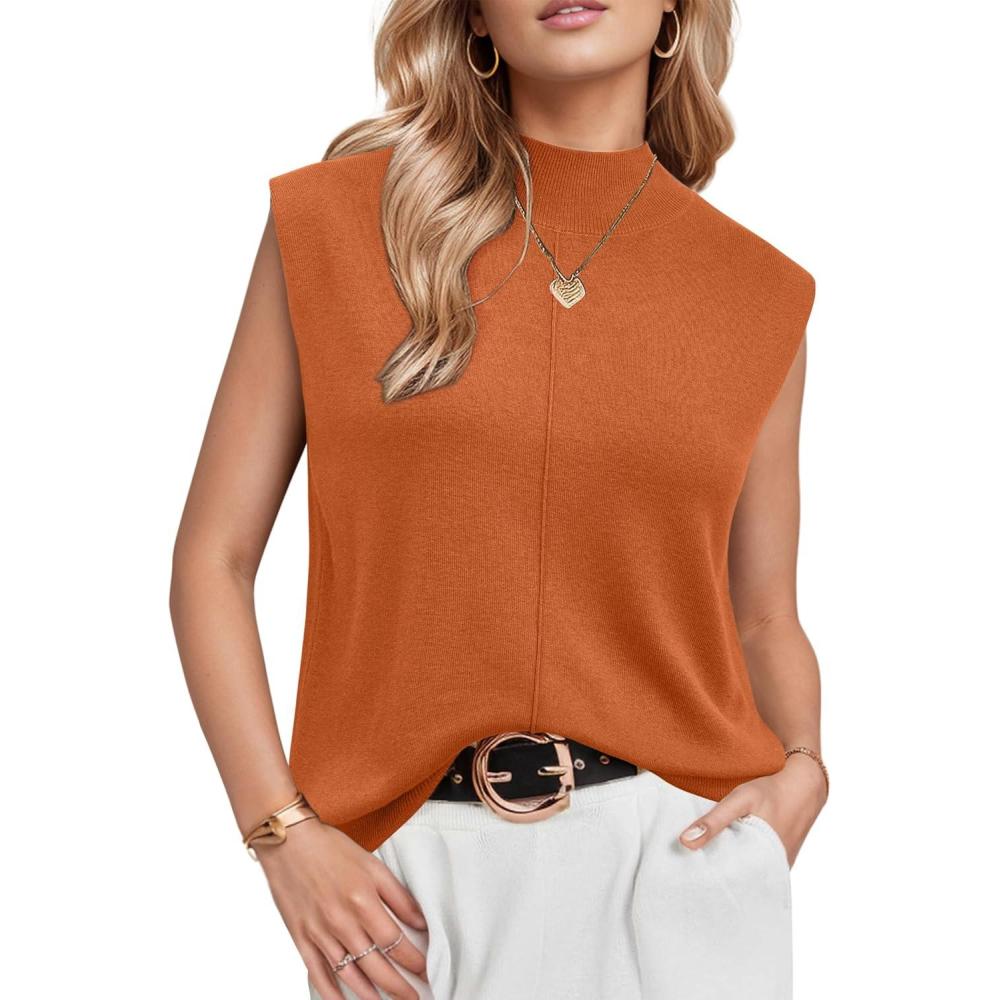 Arach&Cloz Women's Wool Blend Mock Neck Sweaters Vest Business Casual Trendy Tops Fall Outfits 2025(Orange)