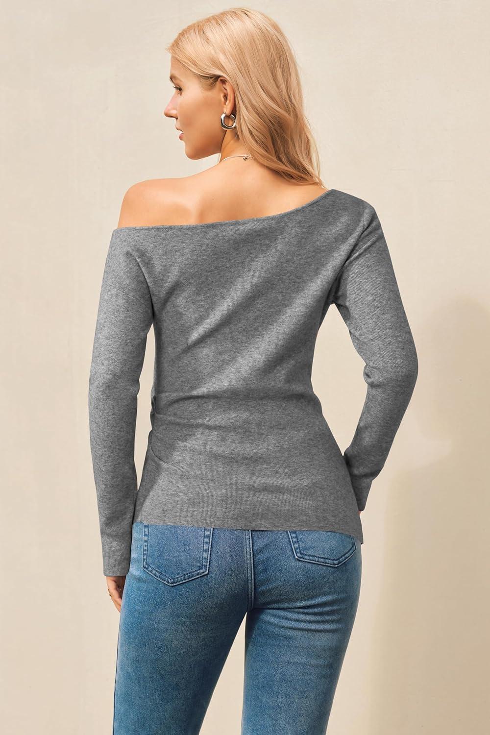 Arach&Cloz Women's Wool Blend Off The Shoulder Sweaters Ruched Slim Fit Date Top 2026(Gray)