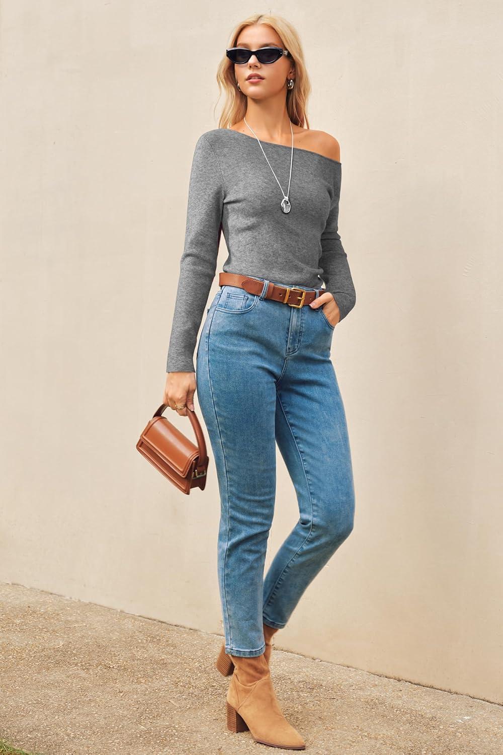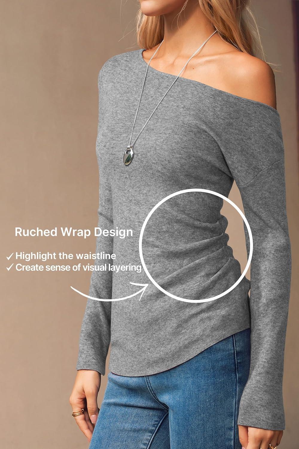Arach&Cloz Women’s Wool Blend Off The Shoulder Sweaters Ruched Slim Fit Date Top 2026(Gray)