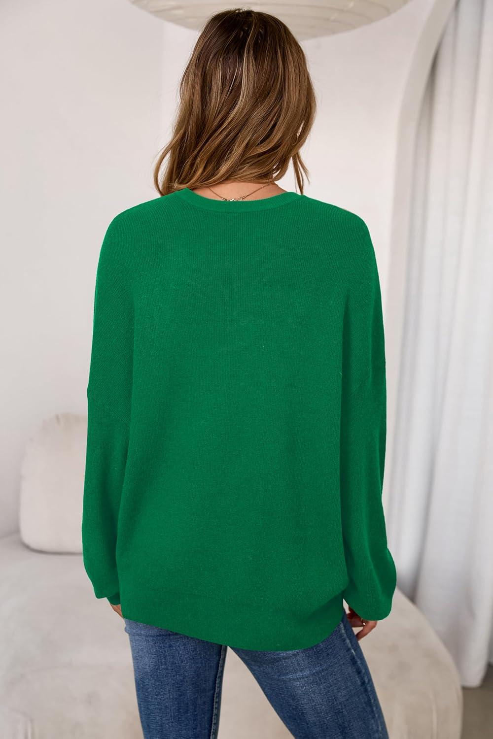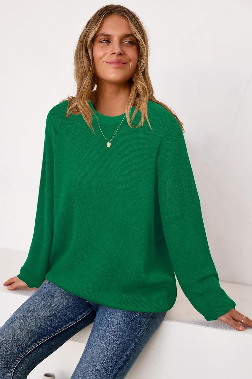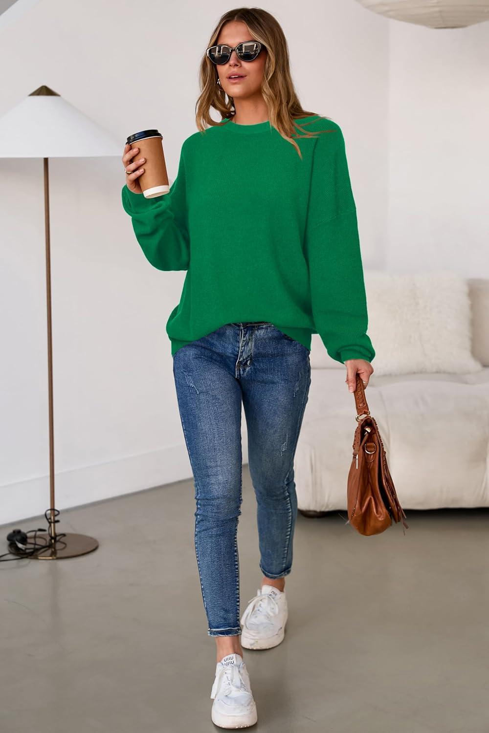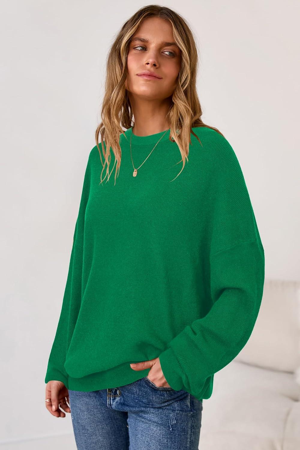 Arach&Cloz Women's Wool Blend Oversized Sweaters Crewneck Casual Fall Outfits Fashion Tops(Green)