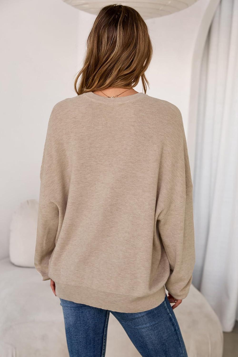 Arach&Cloz Women's Wool Blend Oversized Sweaters Crewneck Casual Fall Outfits Fashion Tops(Oatmeal)