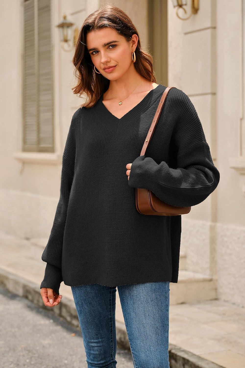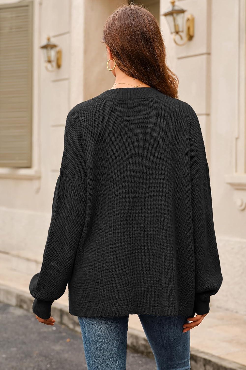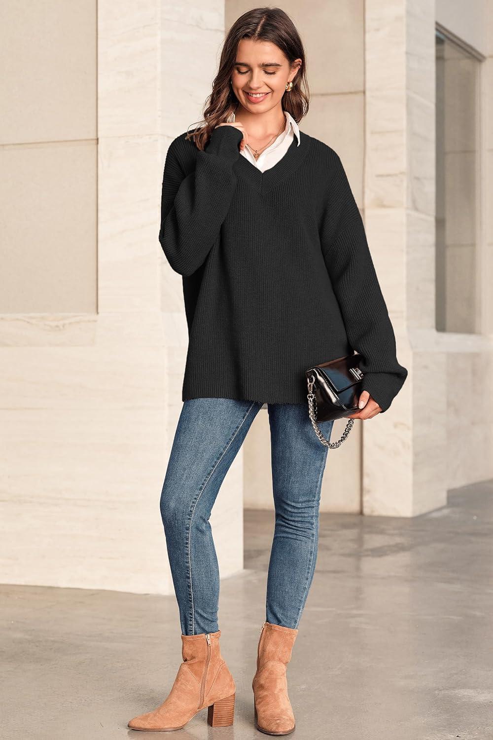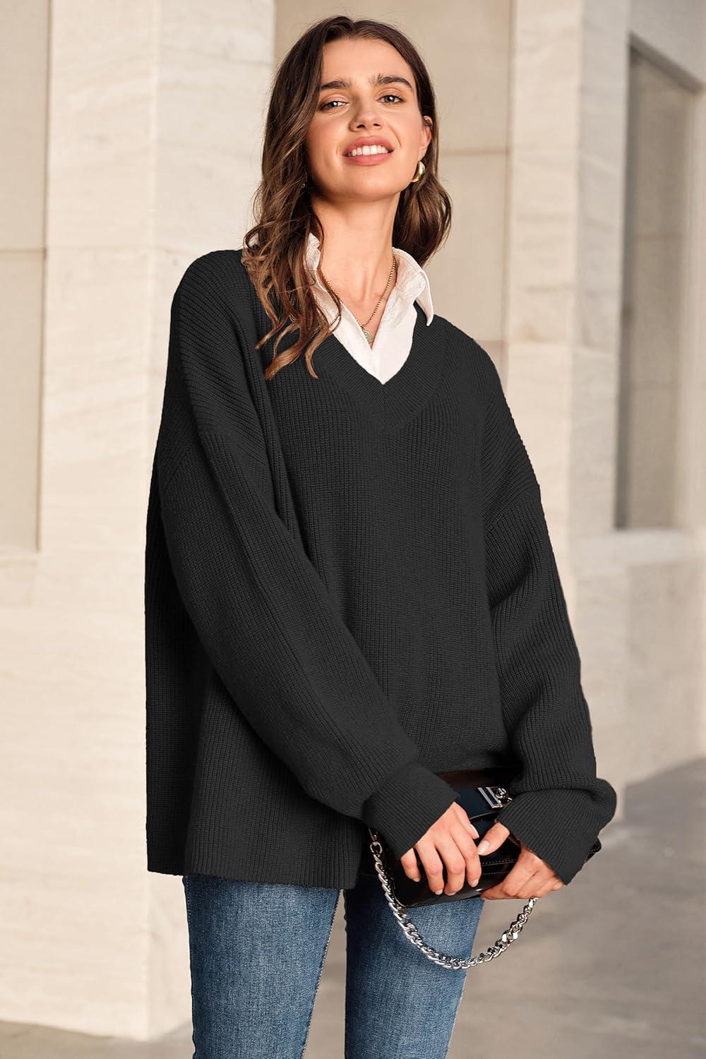 Arach&Cloz Women’s Wool Blend Oversized V Neck Casual Sweaters 2025(Black)