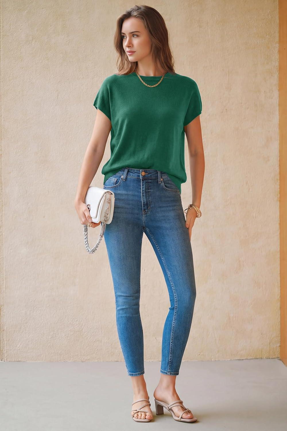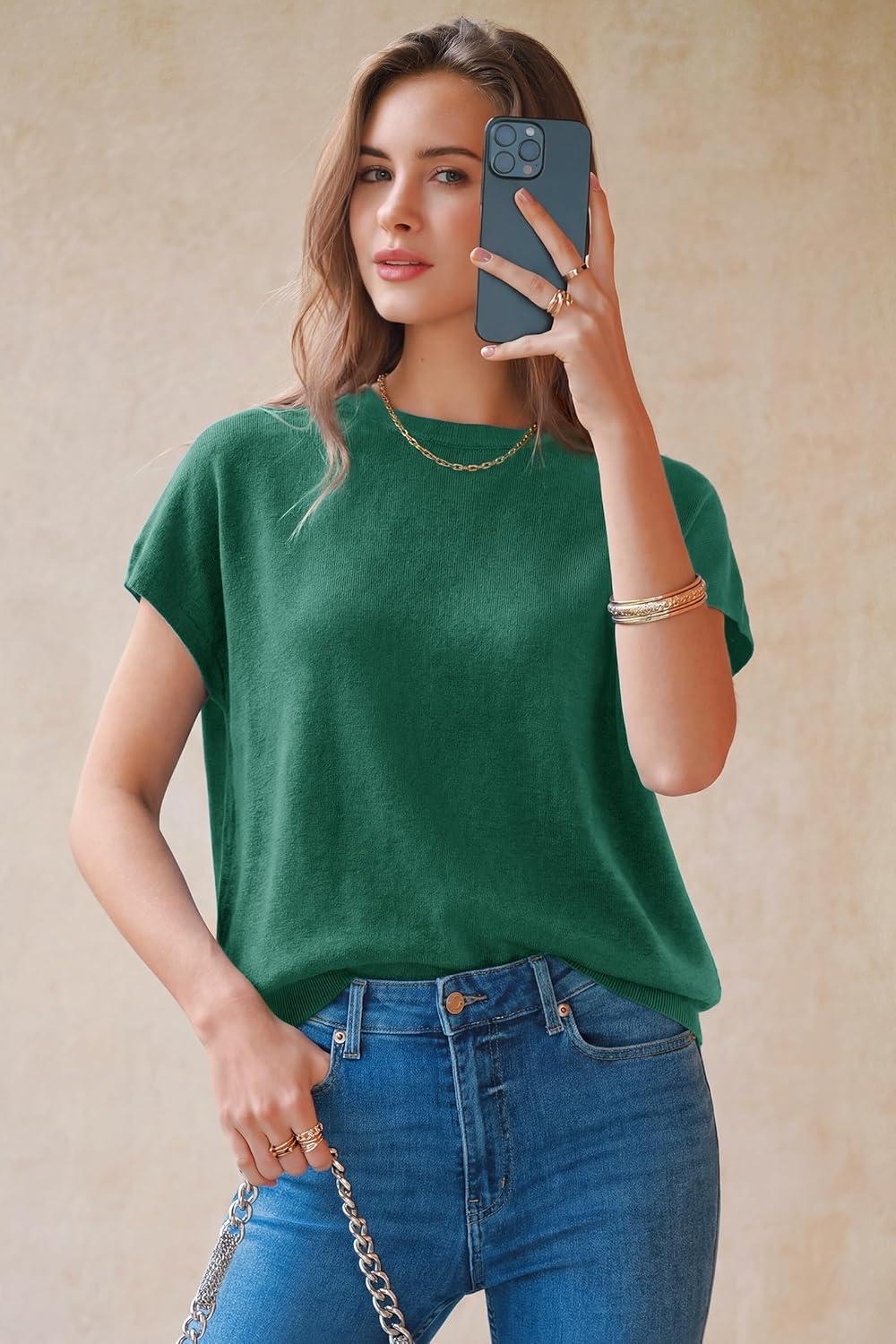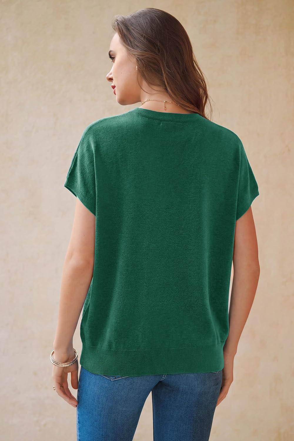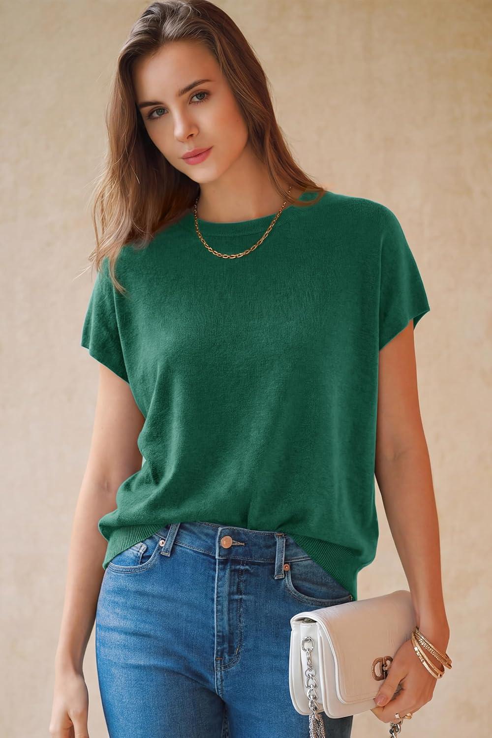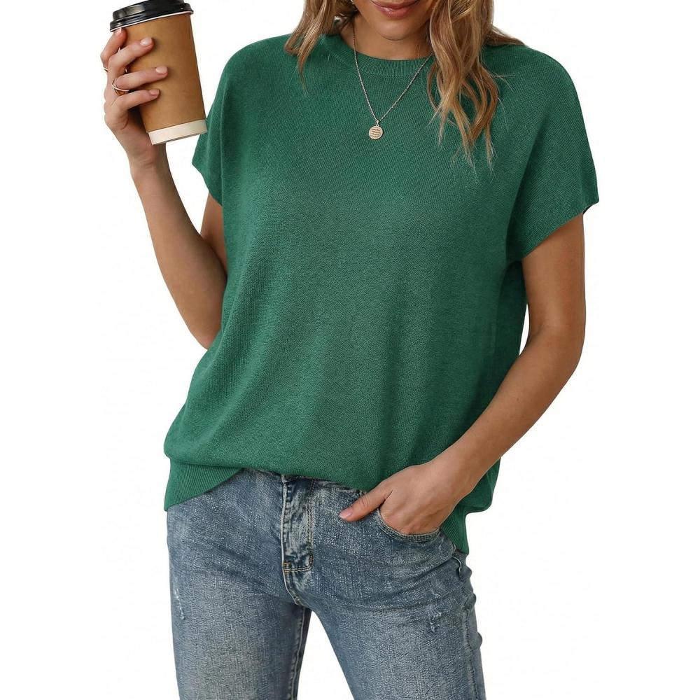 Arach&Cloz Women’s Wool Blend Short Sleeve Oversized Sweater Business Casual Tops Summer 2026(Teal)