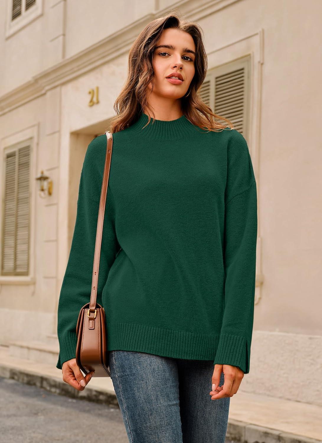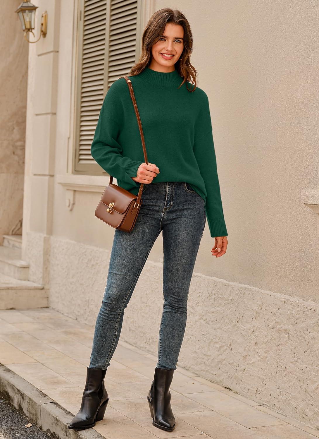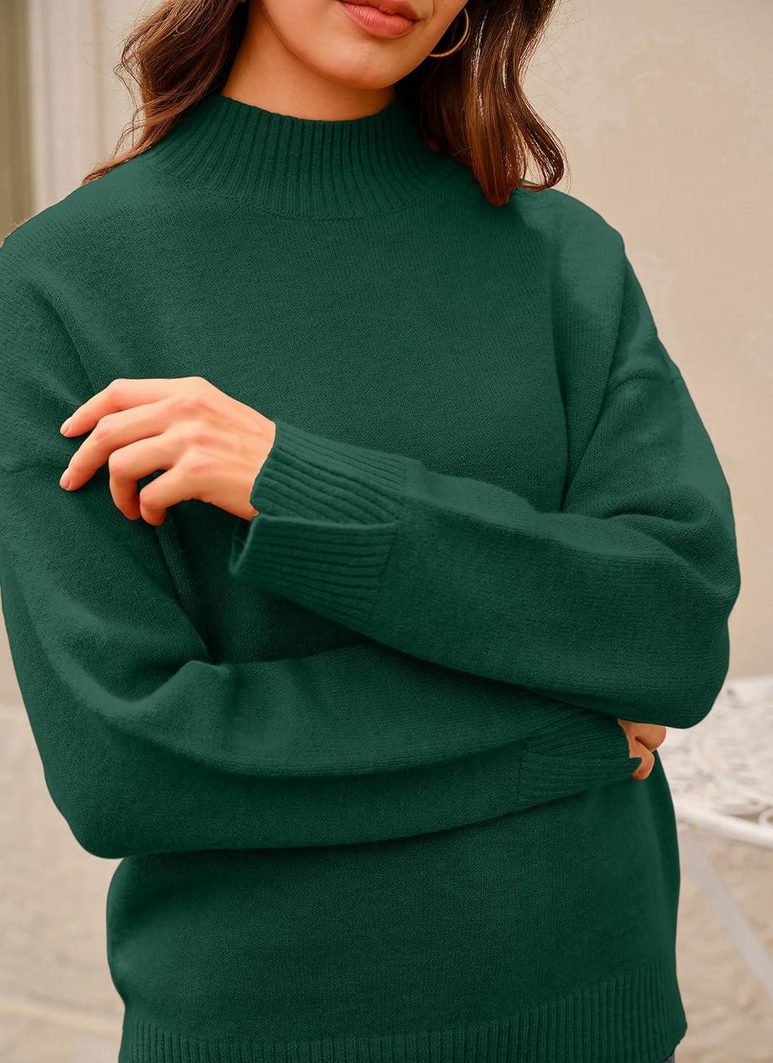 Arach&Cloz Women’s Wool Blend Soft Mock Neck Casual Oversized Fall Sweater(Dark Green)