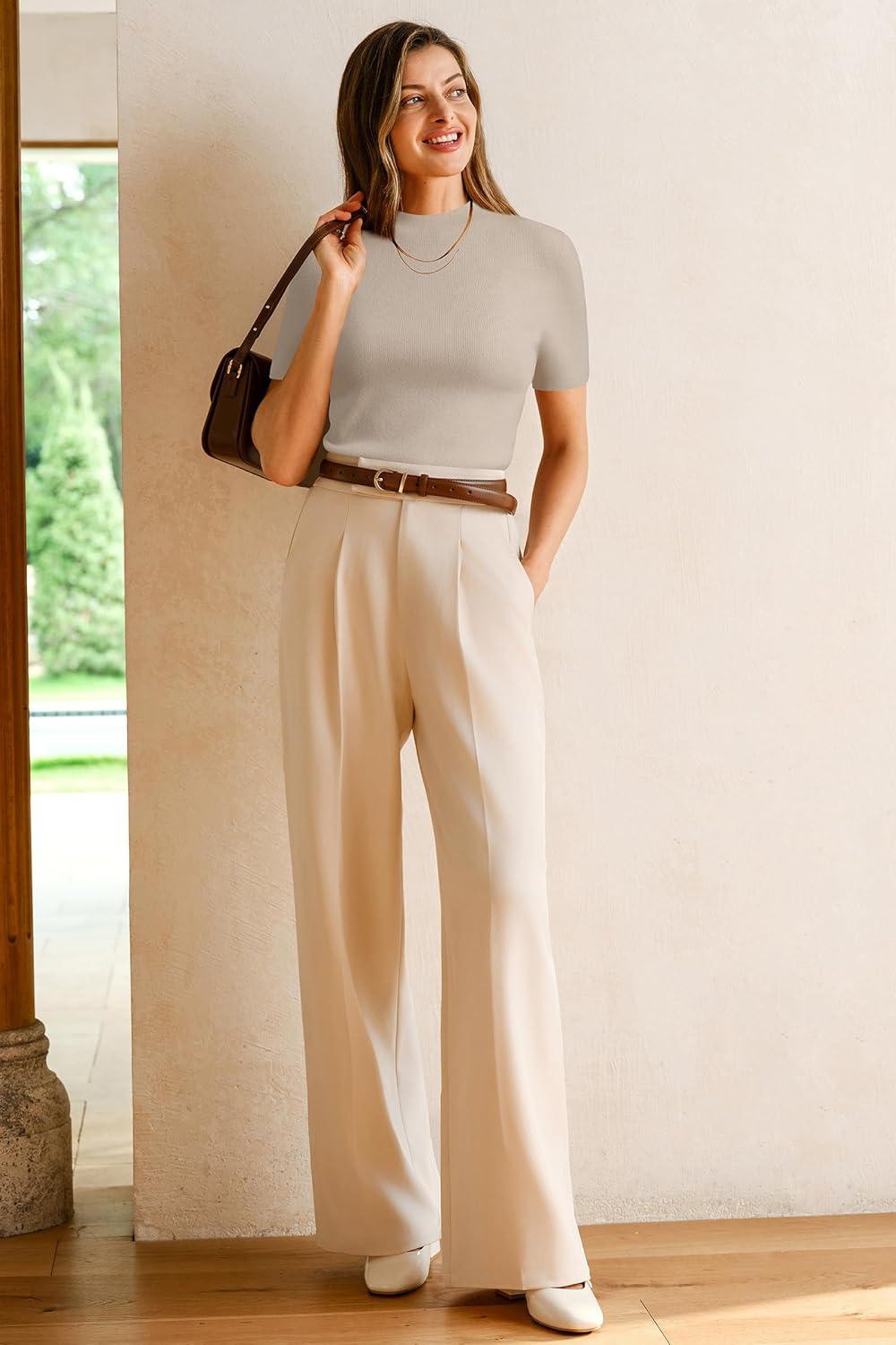 Arach&Cloz Women’s Wool Blend Spring Seamless Rip Resistant Tops Opaque Business Casual Shirts(Beige)