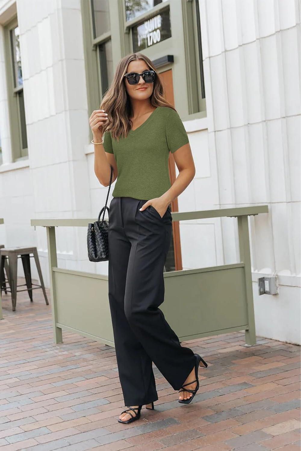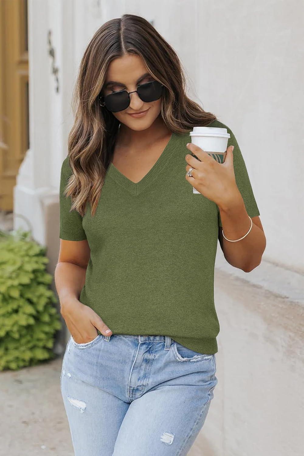 Arach&Cloz Women's Wool Blend Spring Summer Lightweight Business Casual Sweater Tops 2026(Army Green)