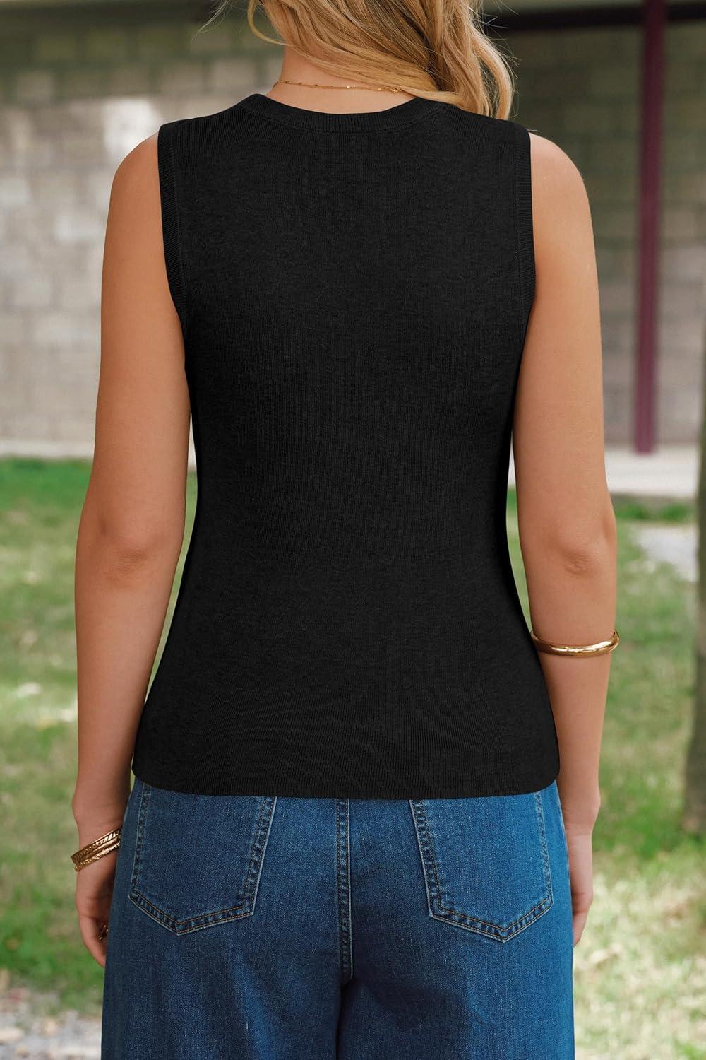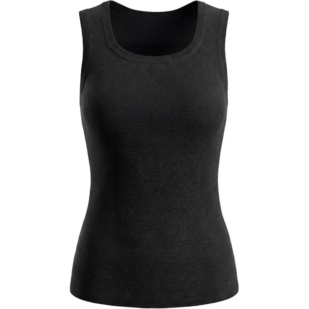 Arach&Cloz Women's Wool Blend Square Neck Spring Summer Basic Slim Fitted Tank Tops 2026(Black)