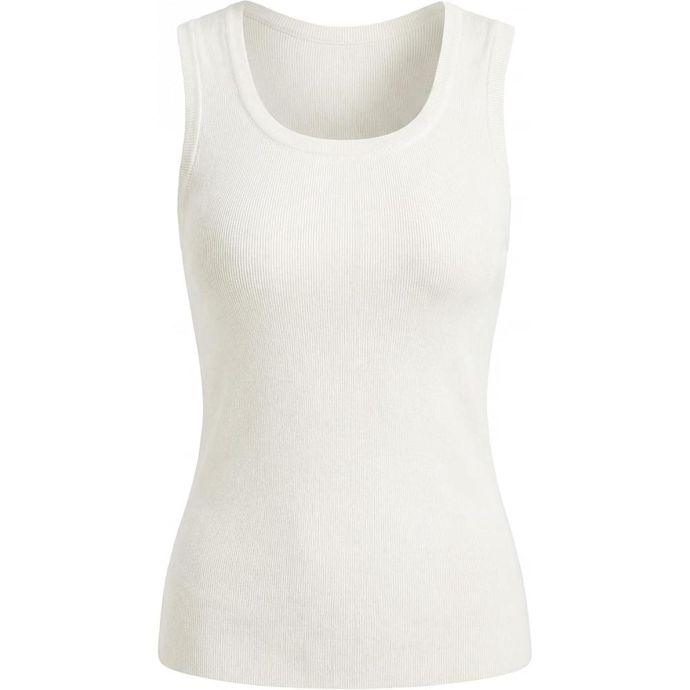 Arach&Cloz Women's Wool Blend Square Neck Spring Summer Basic Slim Fitted Tank Tops 2026(Off-white)