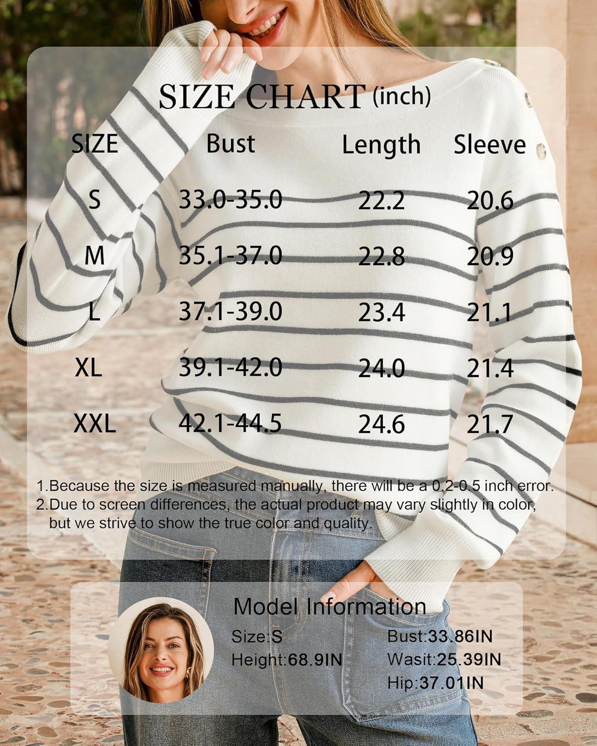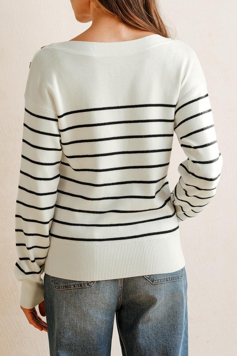 Arach&Cloz Women's Wool Blend Striped Boat Neck Fall Dressy Casual Sweater Tops 2025(Off White and Black)