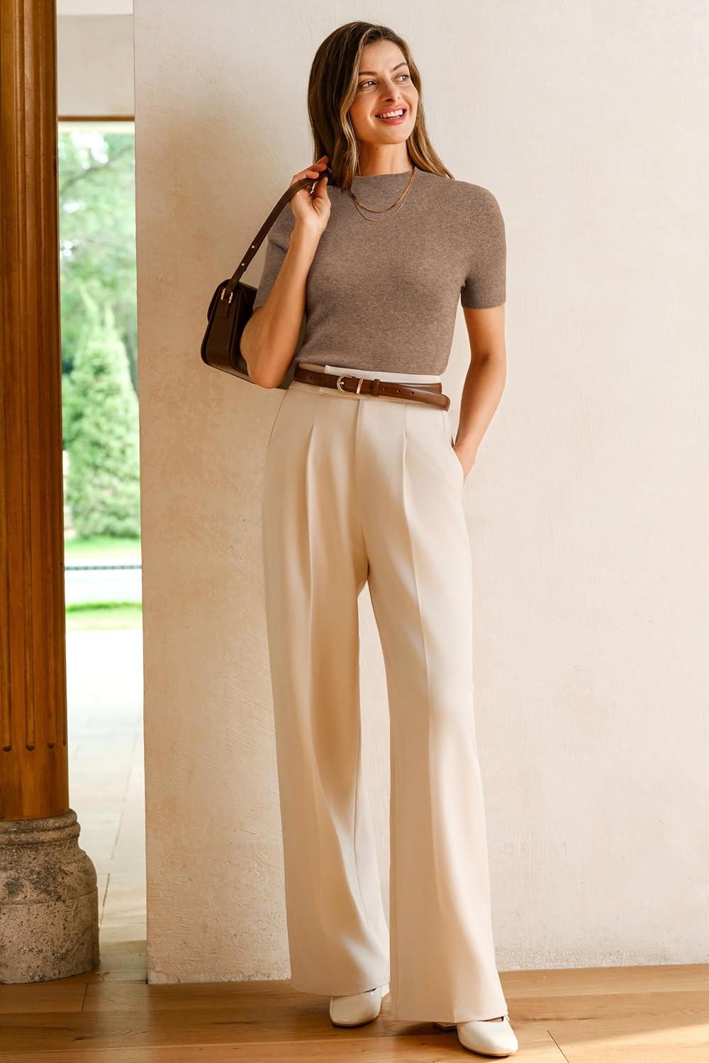 Arach&Cloz Women’s Wool Blend Summer Fall Seamless Rip Resistant Tops Opaque Shirts(Coffee)