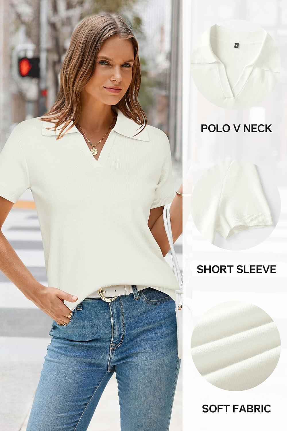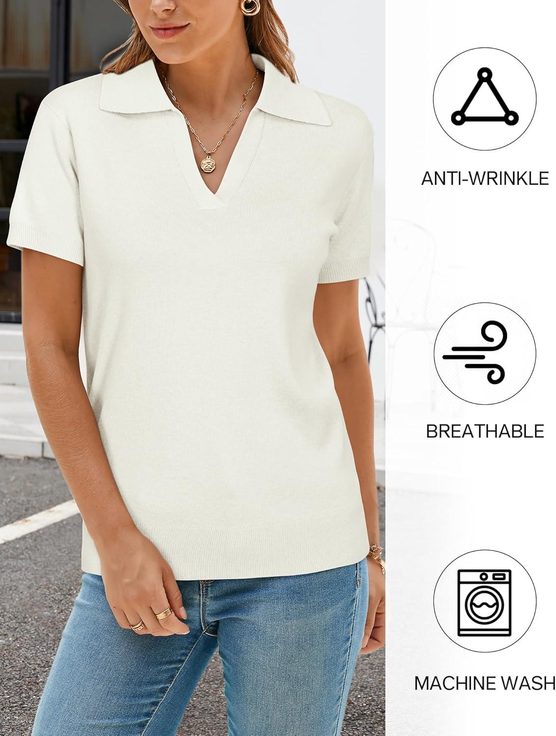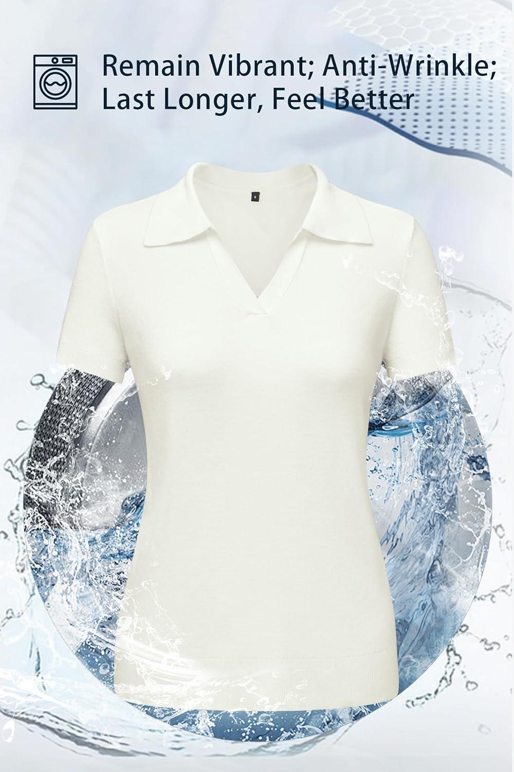 Arach&Cloz Women’s Wool Blend Summer Fall Tops Business Casual Polo Shirts 2025(Off-white)