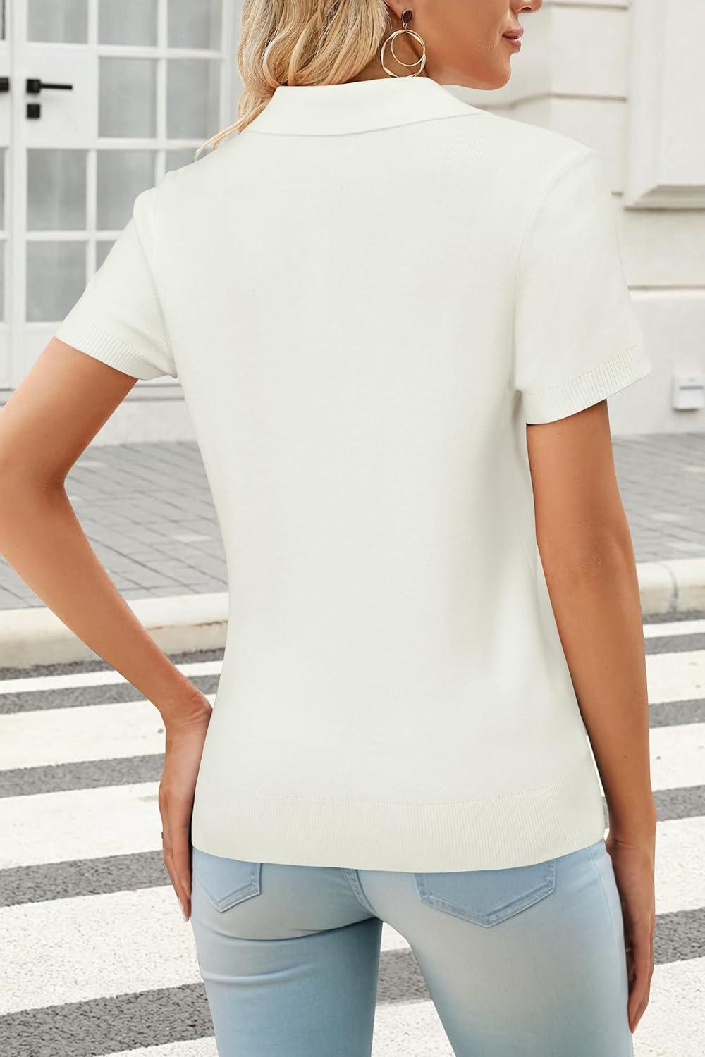 Arach&Cloz Women's Wool Blend Summer Fall Tops Business Casual Polo Shirts 2025(Off-white)