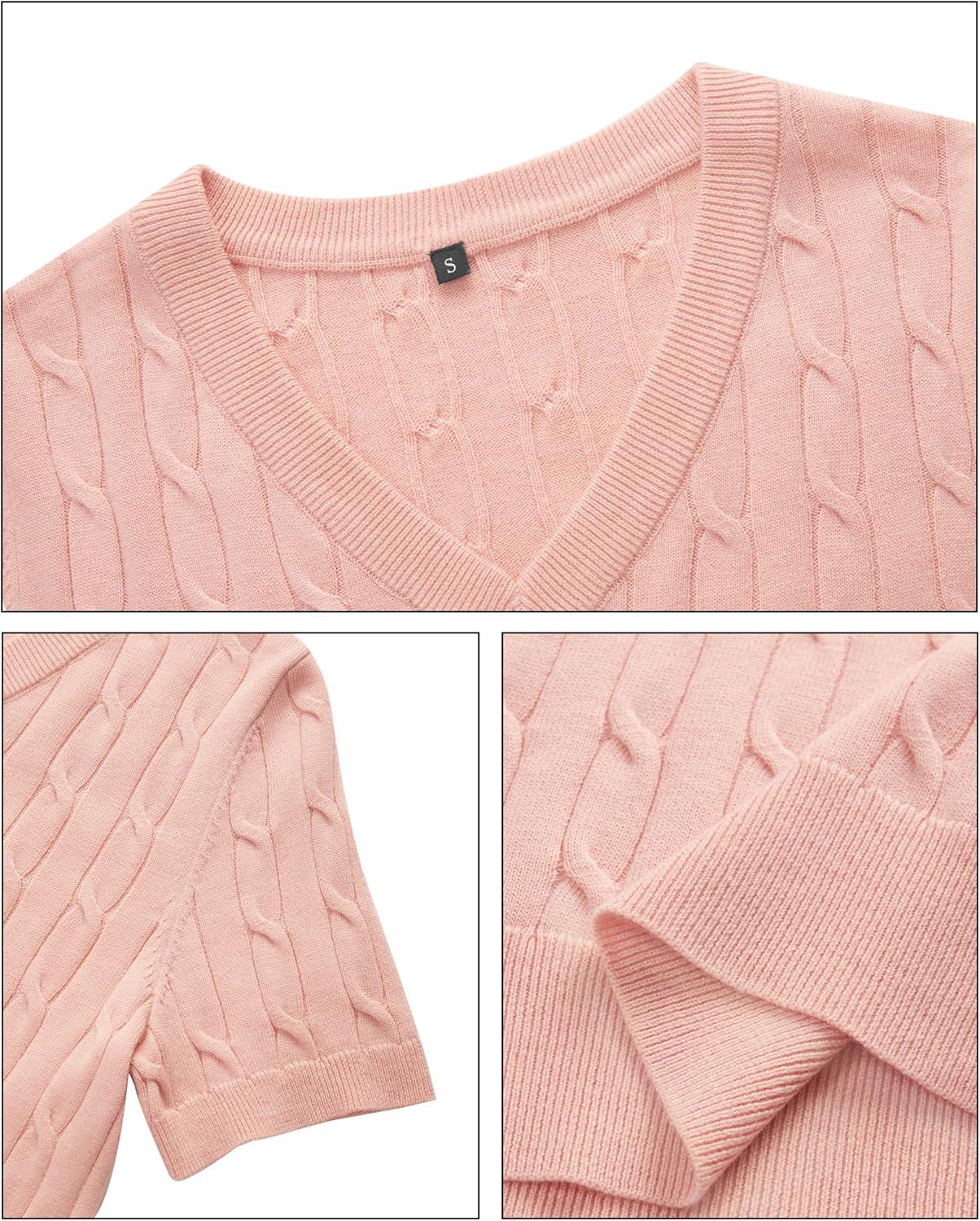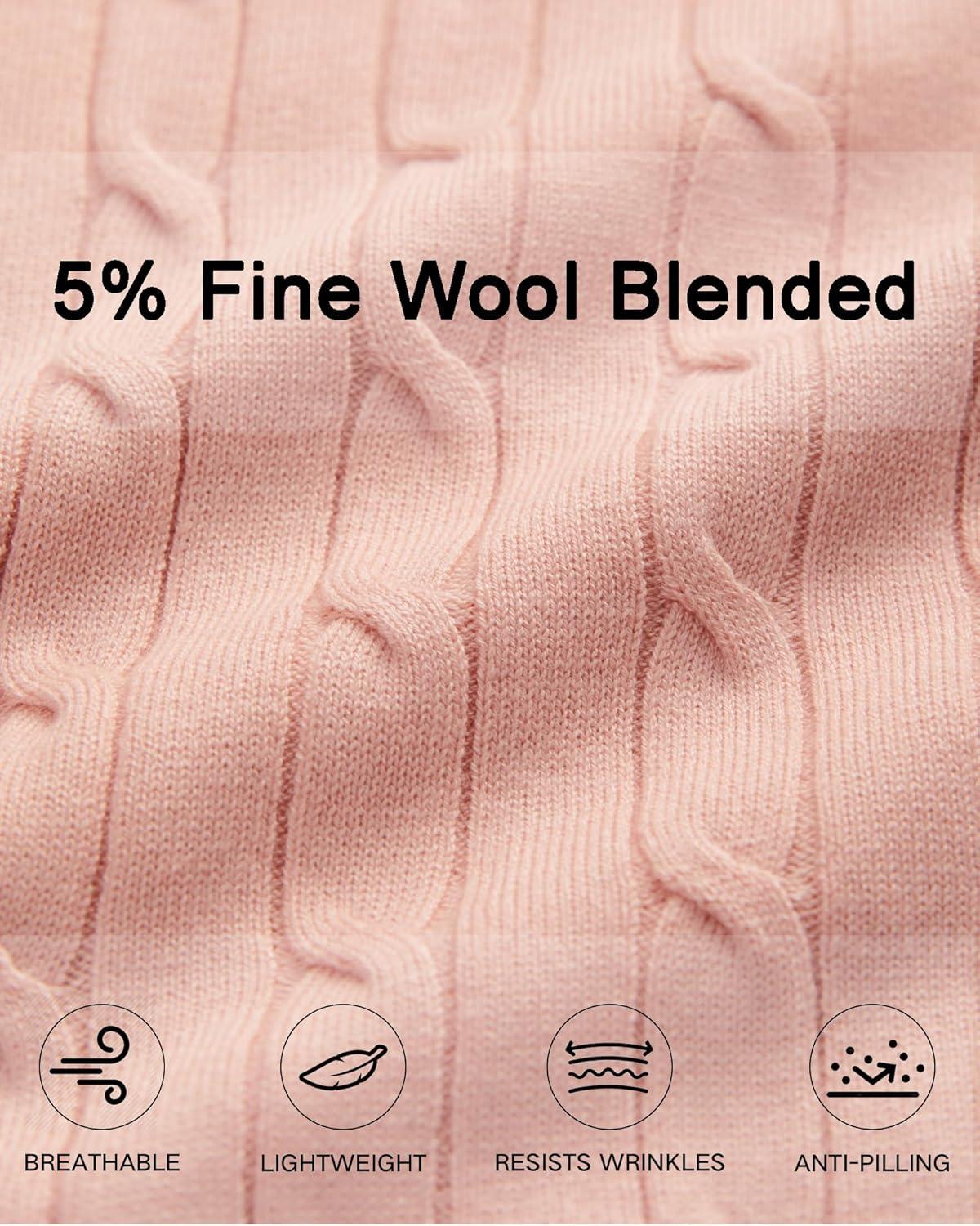 Arach&Cloz Women’s Wool Blend Summer Fall Tops Lightweight Business Casual Blouses(Cable-pale Pink)