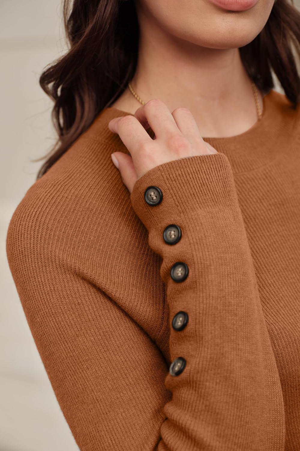 Arach&Cloz Women’s Wool Blend Sweater 2 Piece Sets Business Lounge Long Sleeve Top Midi Dress Outfits(Caramel)
