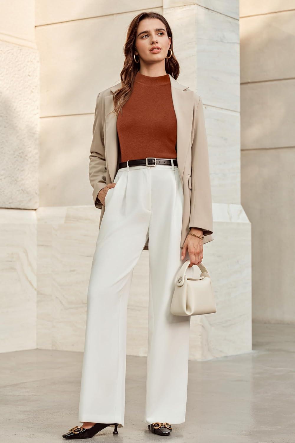 Arach&Cloz Womens Wool Blend Sweater Soft Turtleneck All-Season Casual Tank 2025(Camel)