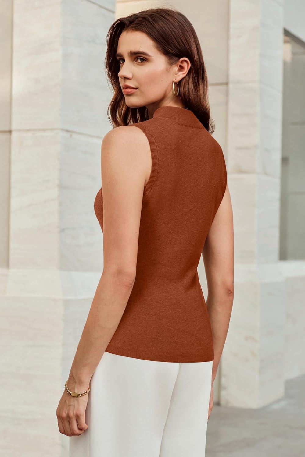 Arach&Cloz Womens Wool Blend Sweater Soft Turtleneck All-Season Casual Tank 2025(Caramel)