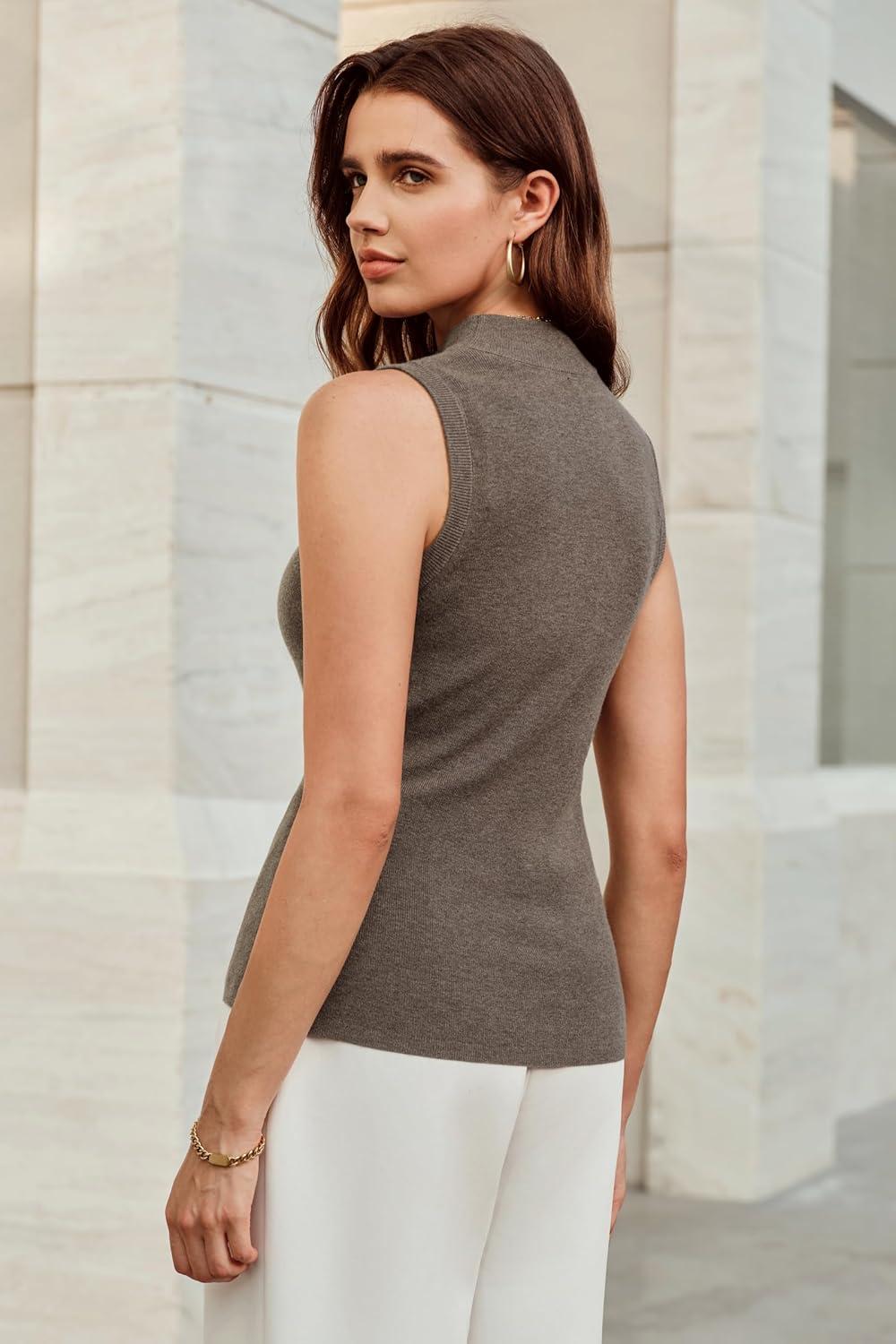 Arach&Cloz Womens Wool Blend Sweater Soft Turtleneck All-Season Casual Tank 2025(Coffee)