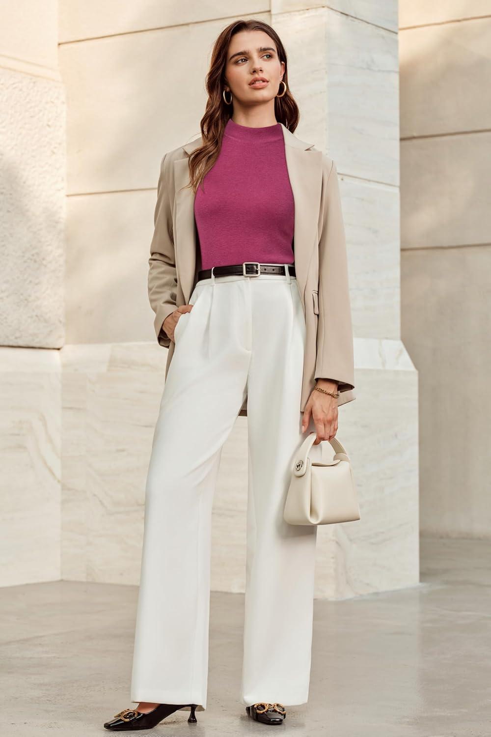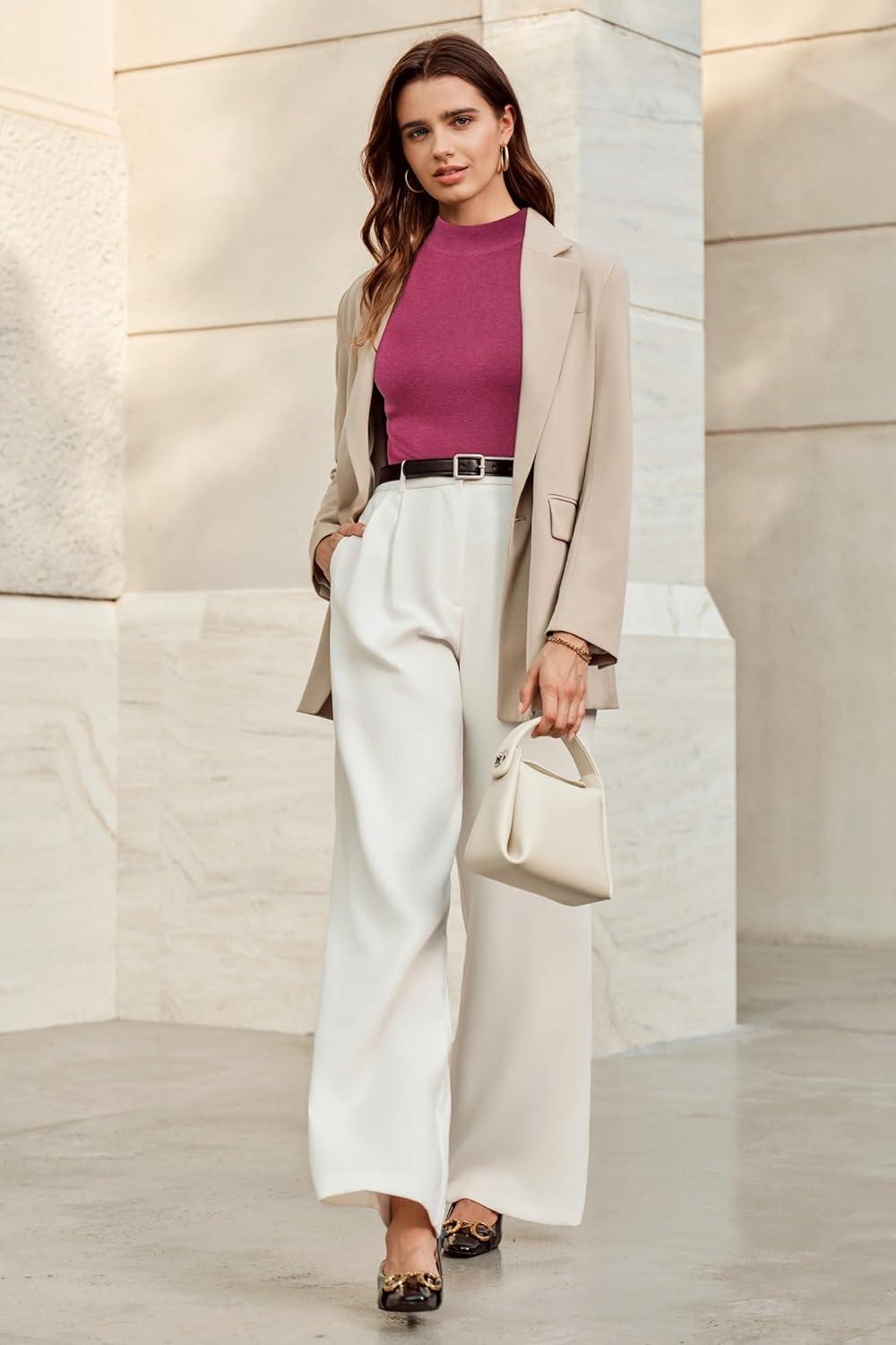 Arach&Cloz Womens Wool Blend Sweater Soft Turtleneck All-Season Casual Tank 2026(Pale Pink)