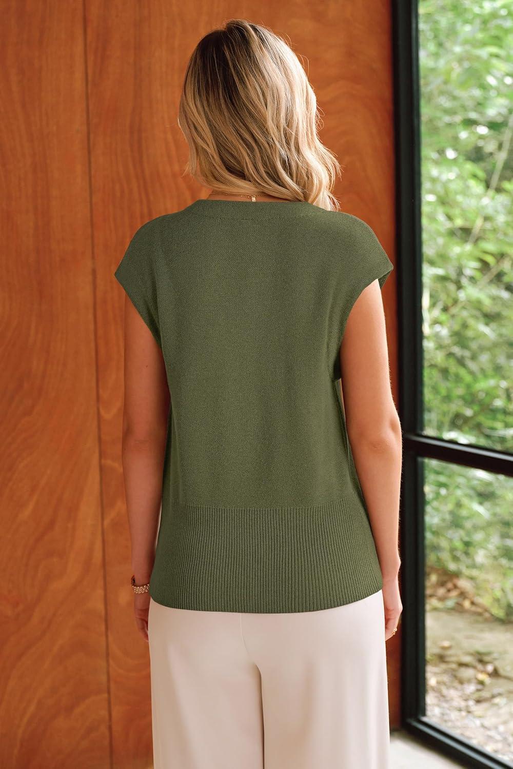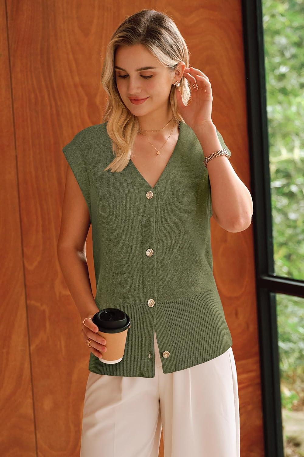Arach&Cloz Women’s Wool Blend Sweater Vest V Neck Button Down Cardigan Business Casual Tops 2026(Olive Green)