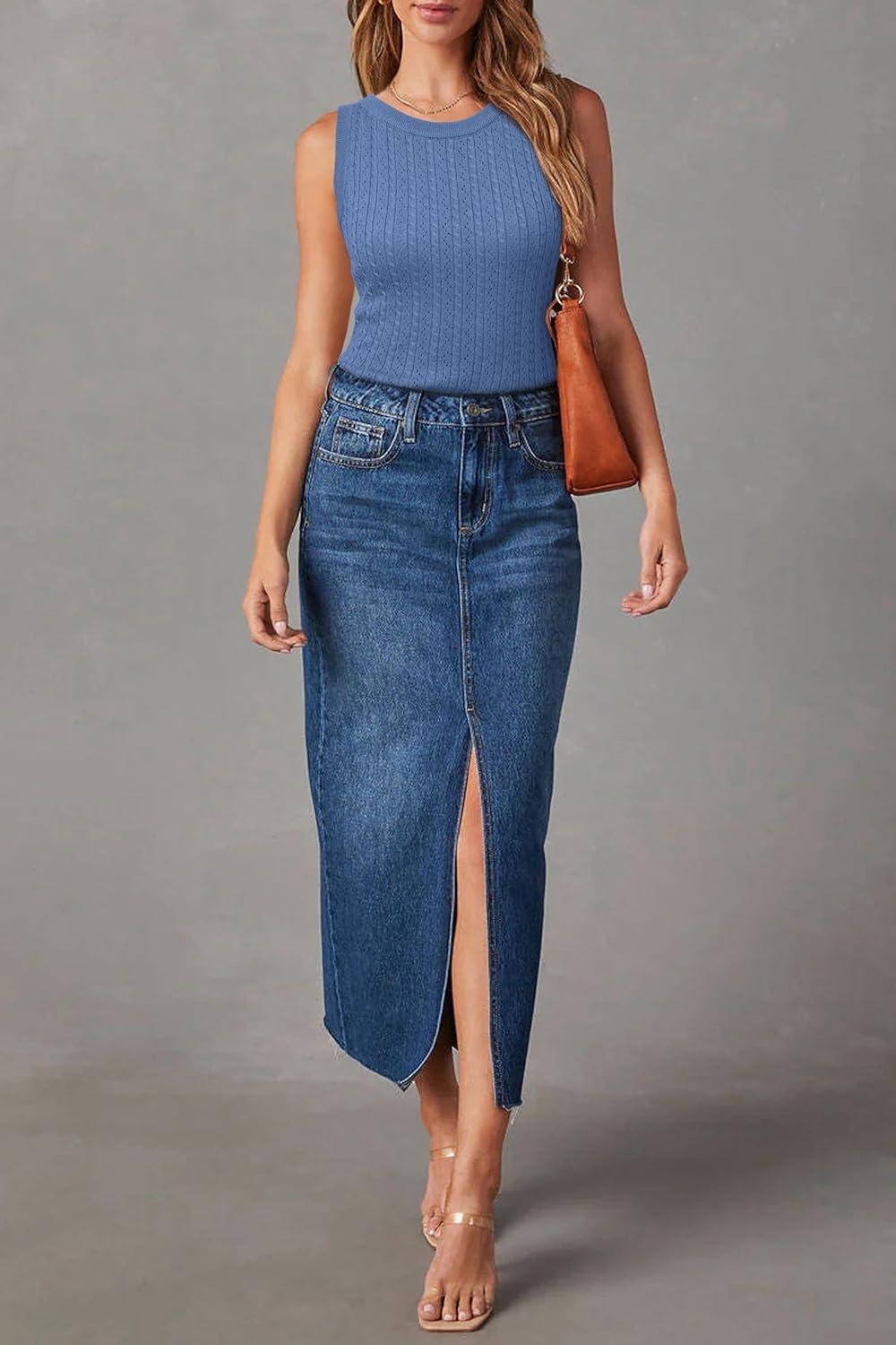 Arach&Cloz Women's Wool Blend Sweaters Non See Through All-Season Business Casual Tank 2026(C-blue)