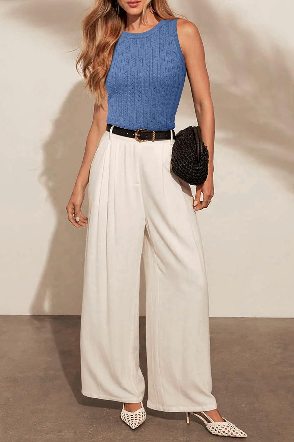 Arach&Cloz Women’s Wool Blend Sweaters Non See Through All-Season Business Casual Tank 2026(C-blue)