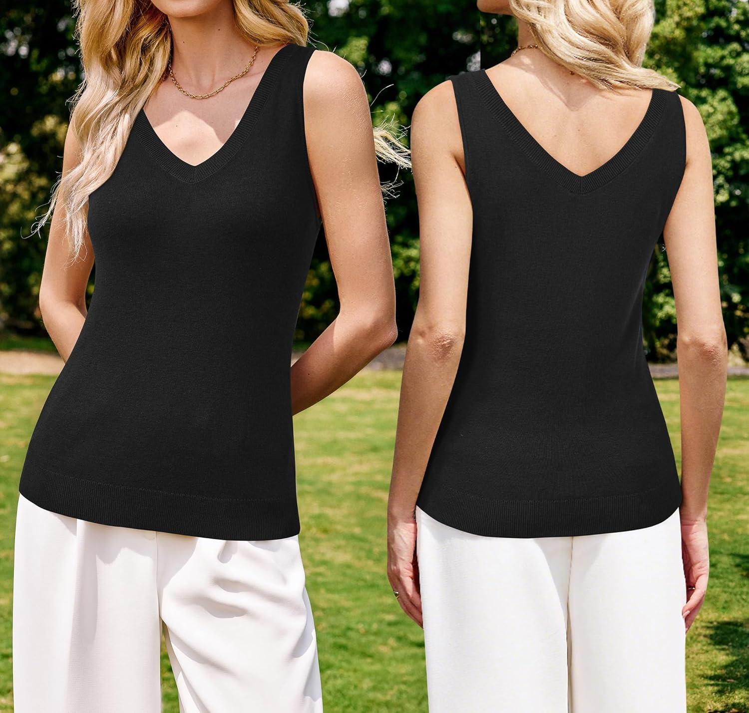 Arach&Cloz Women’s Wool Blend Sweaters Non See Through Double V-Neck All-Season Tank 2026(Black)