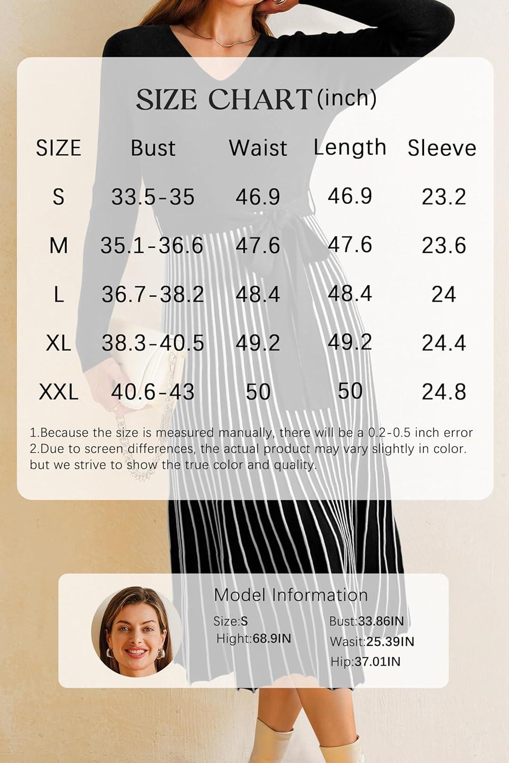 Be the first to review “Arach&Cloz Women’s Wool Blend Tie Waist Pleated Fall Sweater Dress 2025(Black-white Stripe)”