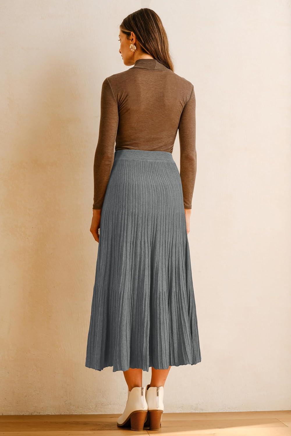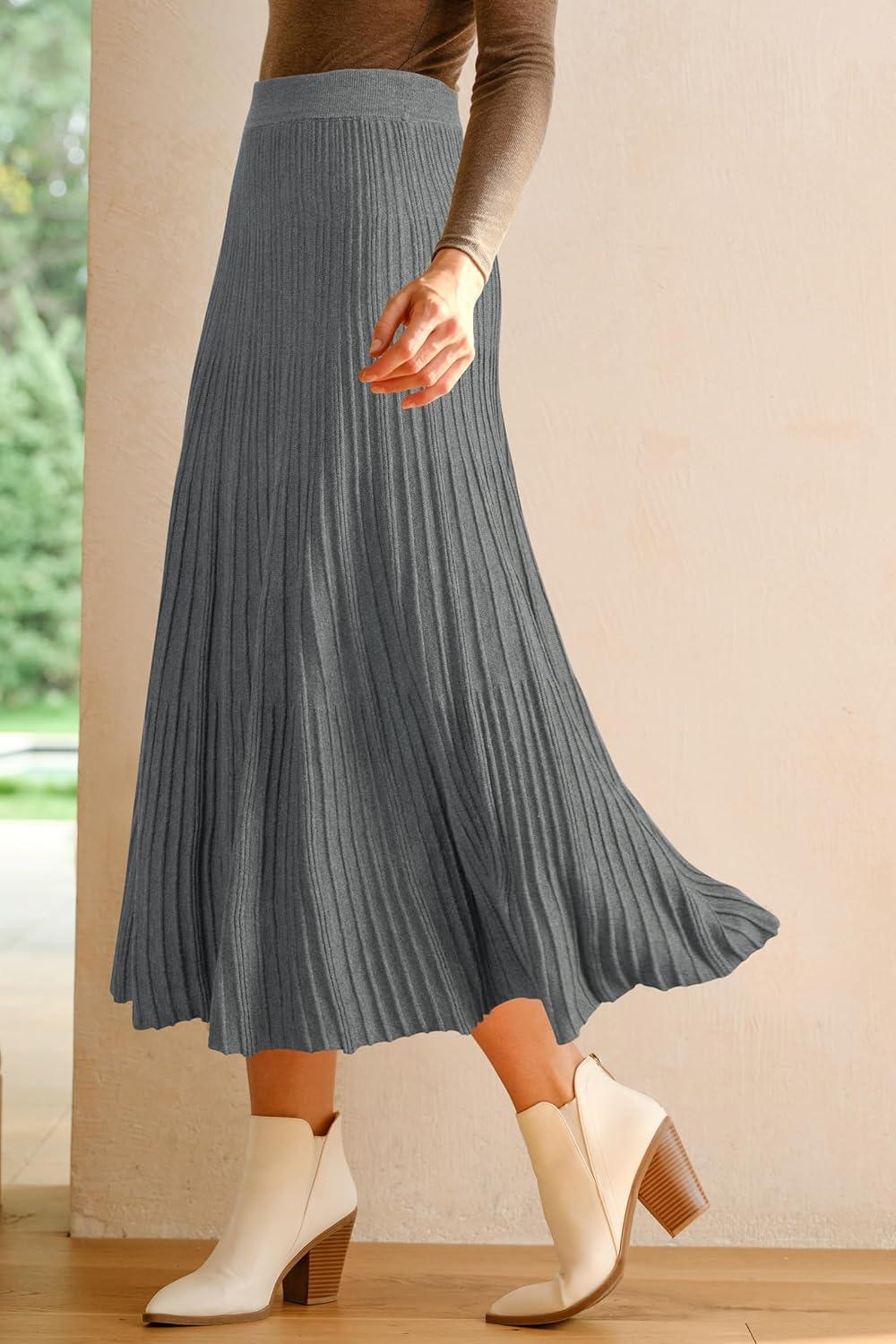 Arach&Cloz Women's Wool Blend Wide Elastic Band A-Line Pleated Flowy Long Skirts 2025(Grey)
