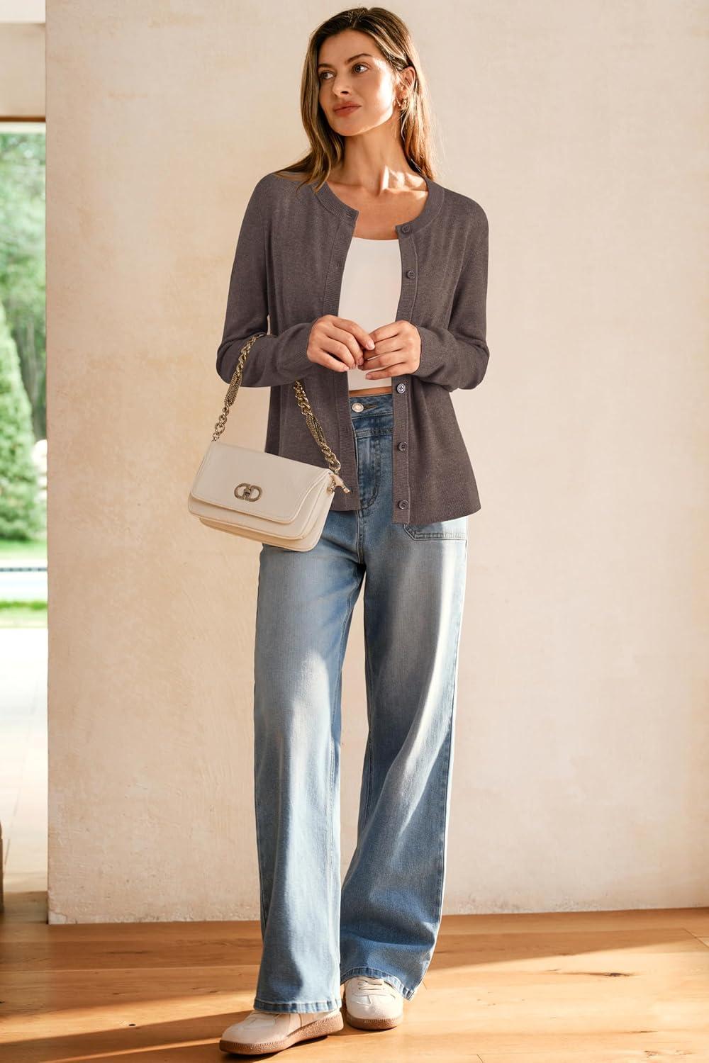 Arach&Cloz Women’s Wool Blended 2025 Fall Cardigan Sweaters Lightweight Long Sleeve Business Casual Outfits Top(Coffee)