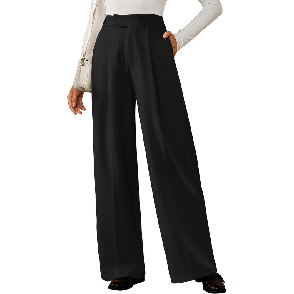 Arach&Cloz Women’s Wrinkle-Free Pleated Business Wide Leg Pants Fall 2025(Black)